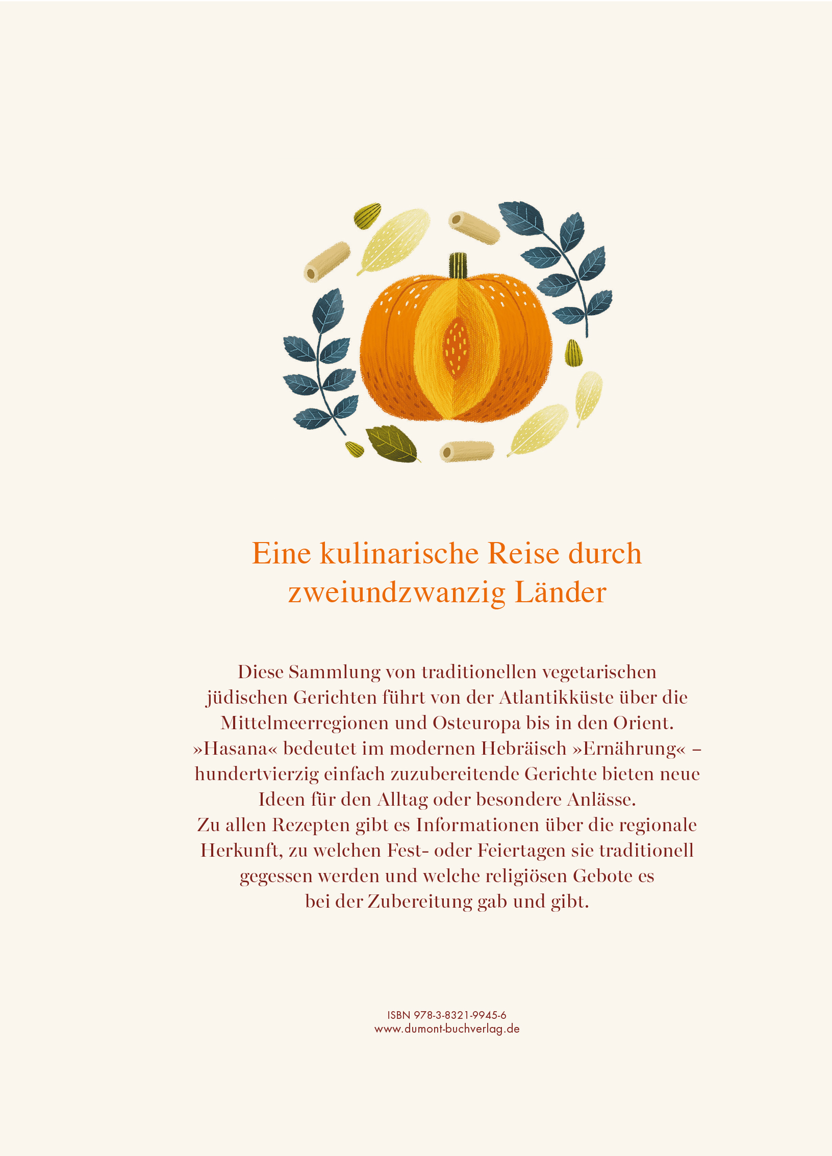 ›Hasana‹ bedeutet im modernen Hebräisch ›Ernährung‹. Das Buch umfasst Vorspeisen, Suppen, Hauptgerichte und Desserts: Die einfach zuzubereitenden Gerichte bieten neue Ideen für den Alltag oder für besondere Anlässe. Zu allen Rezepten gibt es Informationen über die regionale Herkunft, zu welchen Fest- oder Feiertagen sie traditionell gegessen werden und welche religiösen Gebote es bei der Zubereitung gab und gibt.