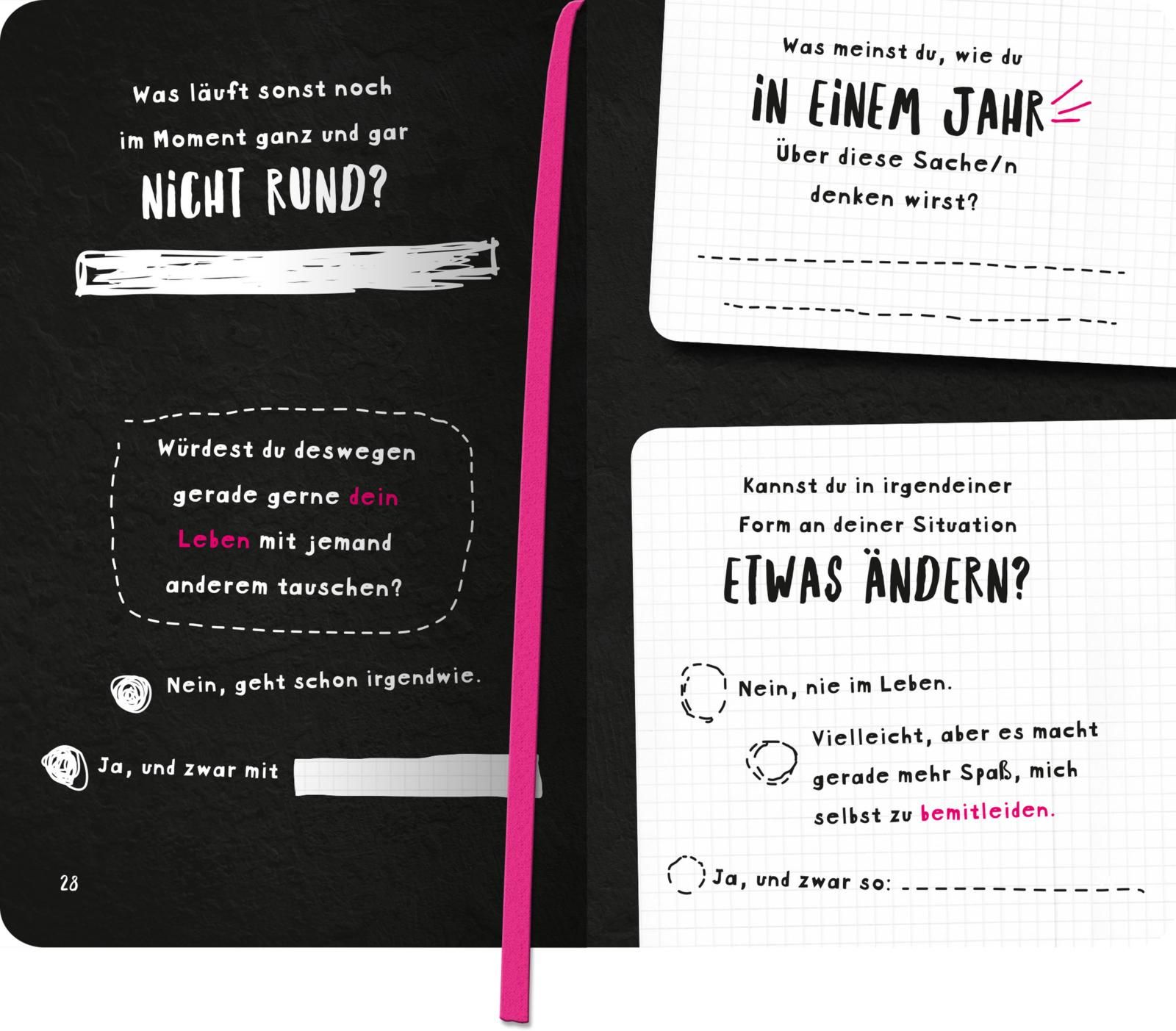 | Schlagworte | Ärger • Eintragbuch • Frust • Frust ablassen • Frusttagebuch • Geschenk • Geschenkidee • Humor • Kopf hoch • Loslassen • schlechte Laune • schwierige Lebensphase • Sorgen • Tagebuch • Trost • Trostbuch • Trösten • Zum Eintragen |