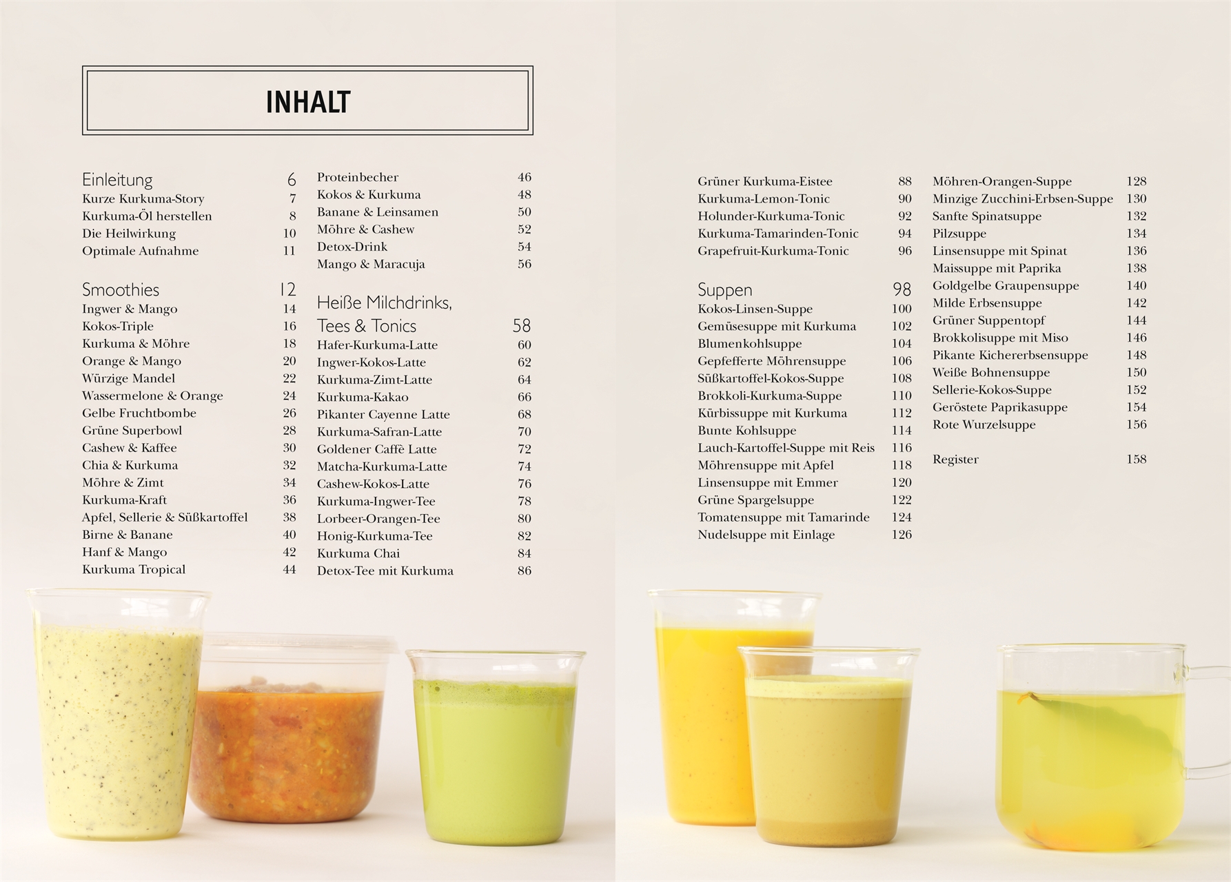 Orangen-Mango-Smoothie, Kurkuma-Kakao-Latte oder Süßkartoffel-Kokos-Suppe: Alle Kurkuma-Rezepte werden visuell einzigartig dargestellt - typisch für die DK Bestsellerreihe. Auf jeder Doppelseite sind links die benötigten Zutaten und rechts das fertige Ergebnis mit der kurzen, knackigen Anleitung abgebildet - anschaulicher und verständlicher geht's nicht. Da macht das Kochen und Mixen mit der Superwurzel doch gleich noch mehr Spaß!