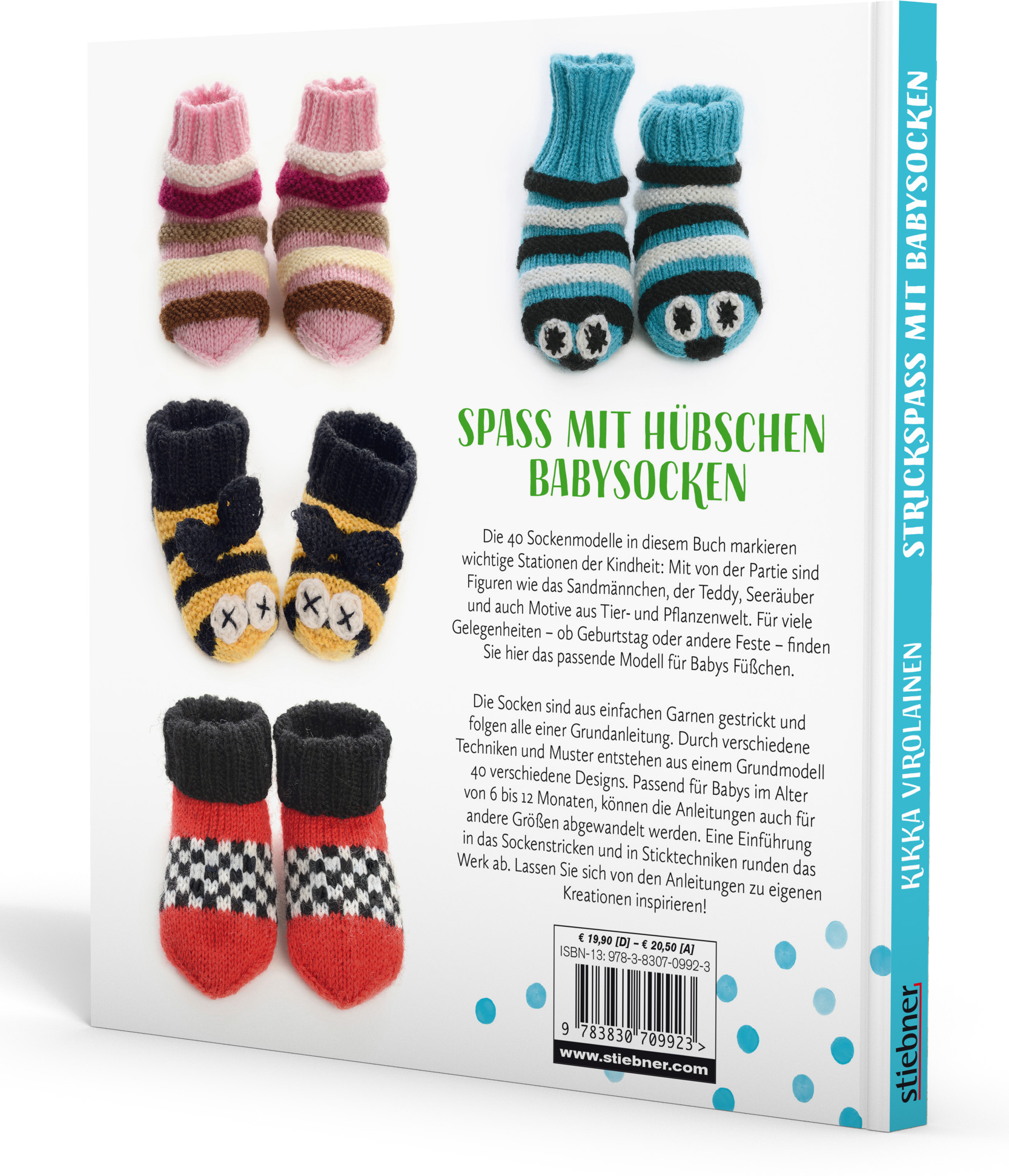 Die 40 Sockenmodelle in diesem Buch markieren wichtige Stationen der Kindheit: Mit von der Partie sind Figuren wie das Sandmännchen, der Teddy, der Seeräuber und auch Motive aus Tier und Pflanzenwelt. Für viele Gelegenheiten - ob Geburtstag oder andere Feste - finden Sie hier das passende Modell für Babys Füßchen.Die Socken werden aus einfachen Garnen gestrickt und folgen alle einer Grundanleitung.Durch verschiedene Techniken und Muster entstehen aus einem Grundmodell 40 verschiedene Designs. Passend für Babys im Alter von 6 bis 12 Monaten, können die Anleitungen auch für andere Größen abgewandelt werden. Eine Einführung in das Sockenstricken und in Sticktechniken runden das Werk ab. Lassen Sie sich von den Anleitungen zu eigenen Kreationen inspirieren!