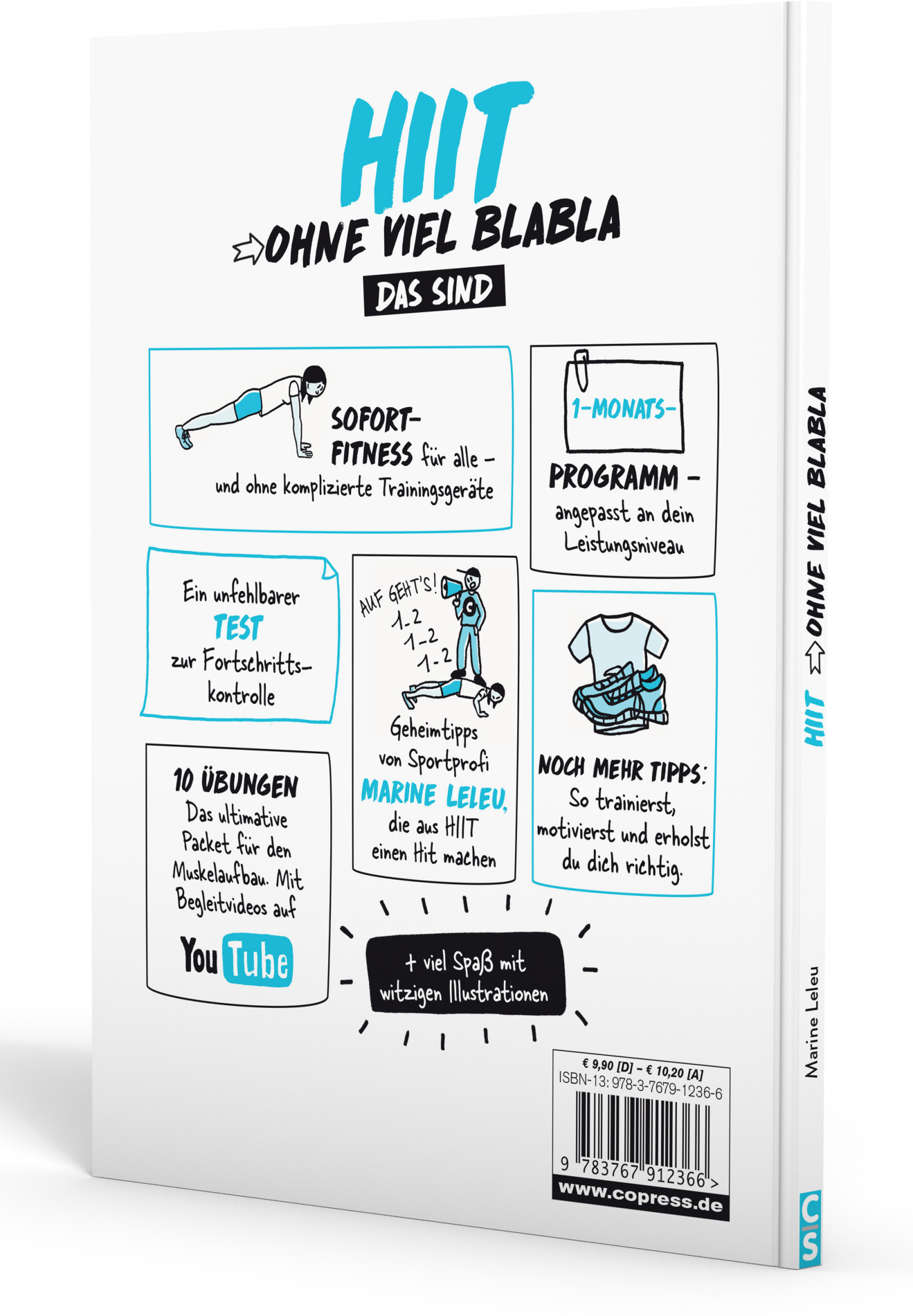 Ob Burpees, Liegestütze oder Squats - in »HIIT ohne viel Blabla« findest du die besten Übungen fürs HIIT Workout für Zuhause. Der Name ist dabei Programm: Für dein Intervalltraining brauchst du keine teure Ausrüstung und kein Fitnessstudio - einfach die Turnschuhe anziehen und loslegen, eben »ganz ohne Blabla!«