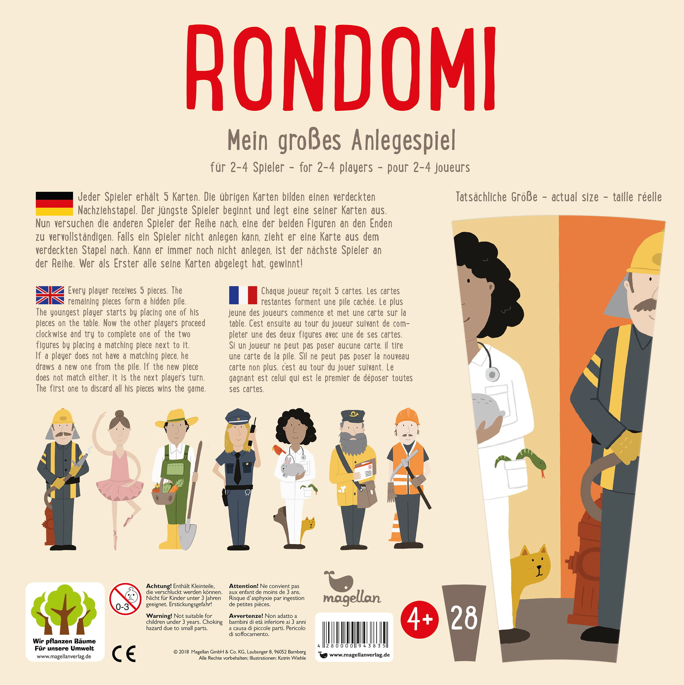 Was passt zusammen? Kann der Feuerwehrmann an den Gärtner angelegt werden? Wo findet die Tierärztin ihren Platz? Und an welche Stelle passen die Polizistin und der Bauarbeiter am besten? Bei diesem kreisrunden Anlegespiel durch die Welt der Berufe ist Kombinationsgeschick gefragt. Wer als Erster alle seine Karten angelegt hat, gewinnt!Ein fröhlicher Spielespaß mit 28 Teilen für zwei bis vier Spieler ab vier Jahren.