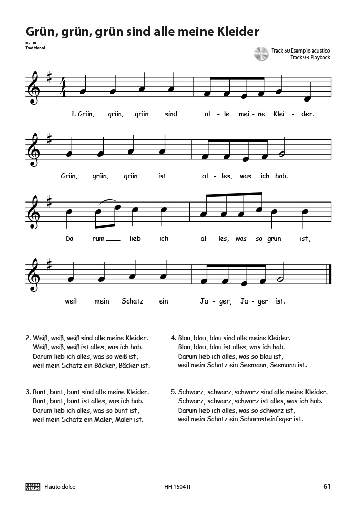 Sul CD potrai trovare tutti gli esercizi e tante fantastiche canzoni. Ogni brano in playback è stato registrato in due versioni: con il flauto dolce come esempio acustico oppure senza per poter suonare di persona. In questo modo avrai la possibilità di ascoltare esattamente l’esercizio per poi riprodurlo di persona sulla melodia di accompagnamento. Questo garantisce un’ottima riuscita e