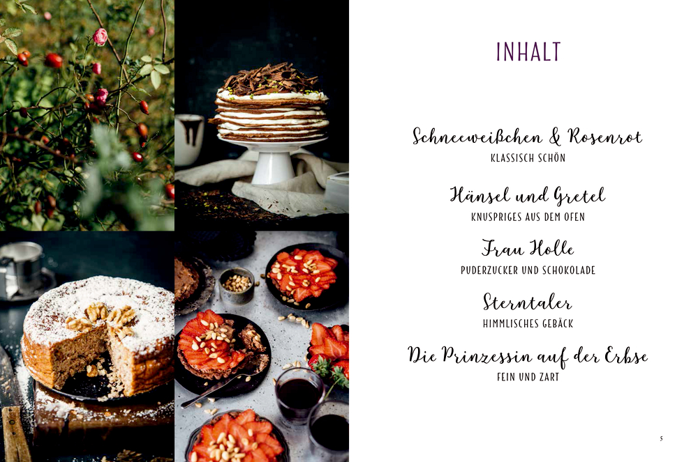 Zauberhafte Backrezepte laden zu einer kulinarischen Märchenreise ein, die uns auf Knusperpfaden in verschneite Puderzuckerwelten entführt. Das Buch präsentiert, neben ausgewählten Rezepten, fünf Märchen der Gebrüder Grimm, die das Warten auf die erste Kostprobe verkürzen, wenn der köstliche Duft der Bratapfel-Tarte-Tartin schon das Haus erfüllt. Marmorierter Käsekuchen mit rosenroter Fruchtsoße und goldene Macadamia-Cupcakes lassen uns von magischen Märchenwäldern träumen und hätten garantiert sogar der Prinzessin auf der Erbse bestens geschmeckt.