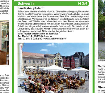 Die Rad- und Wanderkarte widmet sich dem Landstrich Mecklenburg-Vorpommerns, der sich zwischen der Landeshauptstadt und der Ostseeküste mit der alten Hansestadt Wismar bis zur Insel Poel erstreckt. Viele markierte Rad- und Wanderwege lassen diesen Teil der mecklenburgischen Seenplatte gut erschließen. Einige Strecken führen ufernah am Schweriner See oder an den benachbarten kleineren Seen vorbei. Infos über Sehenswürdigkeiten der Region gibt's auf der Rückseite der Rad- und Wanderkarte: Wussten Sie beispielsweise, dass der Schweriner See der viertgrößte See in unserem Land ist?