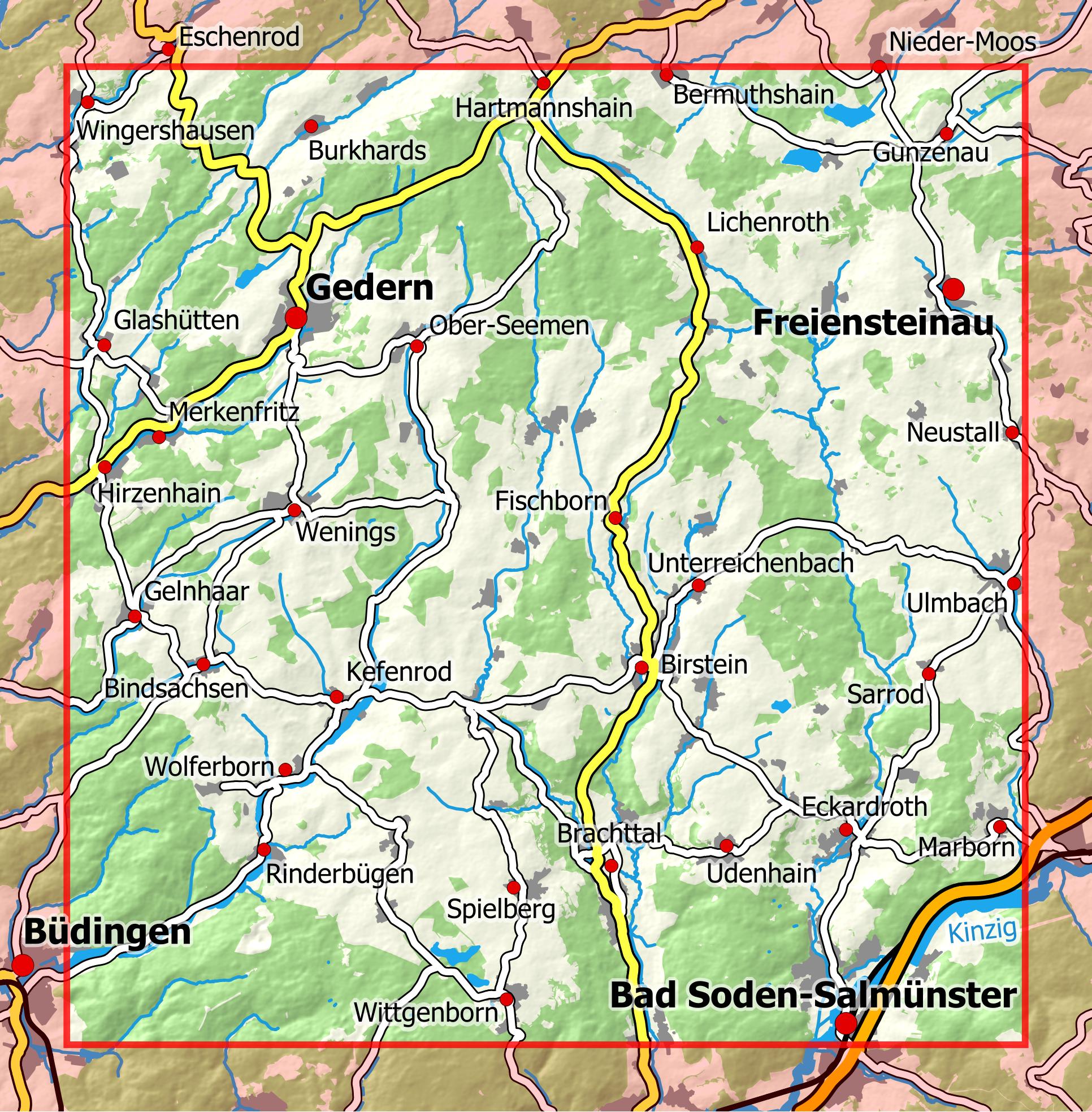 Wanderkarte mit Radwegen, Blatt 52-558, 1 : 25 000, Bad Soden-Salmünster, Birstein, Brachttal, Freiensteinau, Gedern