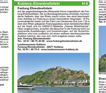 Die Rheinstrecke von Koblenz bis Köln prägt den Kartenausschnitt der Radkarte Köln - Bonn - Koblenz. Zahlreiche Fern- und Regionalradwege durchziehen das Gebiet, von denen der Vulkanparkradweg eigens beschrieben wird. Neben Strecken entlang des Rheins und seiner Zuflüsse Ahr und Sieg führen einige Routen auch durch die angrenzende Eifel und das Ahrtal. Sie erfordern wegen starker Steigungen Kondition. Weitere interessante Tipps zur Region findet der Radler auf der Rückseite der Radwanderkarte Köln - Bonn - Koblenz.