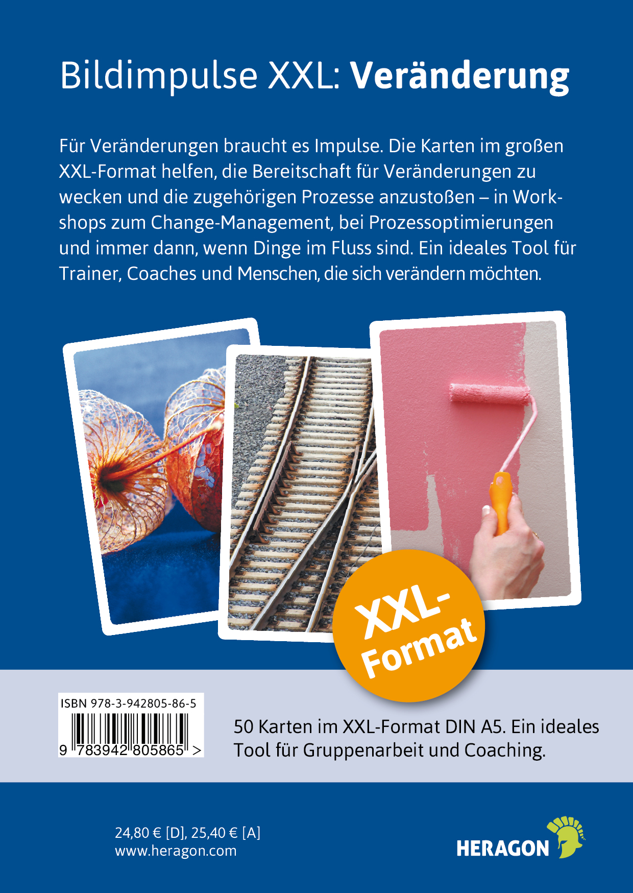 Für Veränderungen braucht es Impulse. Die Karten im großen XXL-Format helfen, die Bereitschaft für Veränderungen zu wecken und die zugehörigen Prozesse anzustoßen – in Workshops zum Change-Management, bei Prozessoptimierungen und immer dann, wenn Dinge im Fluss sind. Ein ideales Tool für Trainer, Coaches und Menschen, die sich verändern möchten.