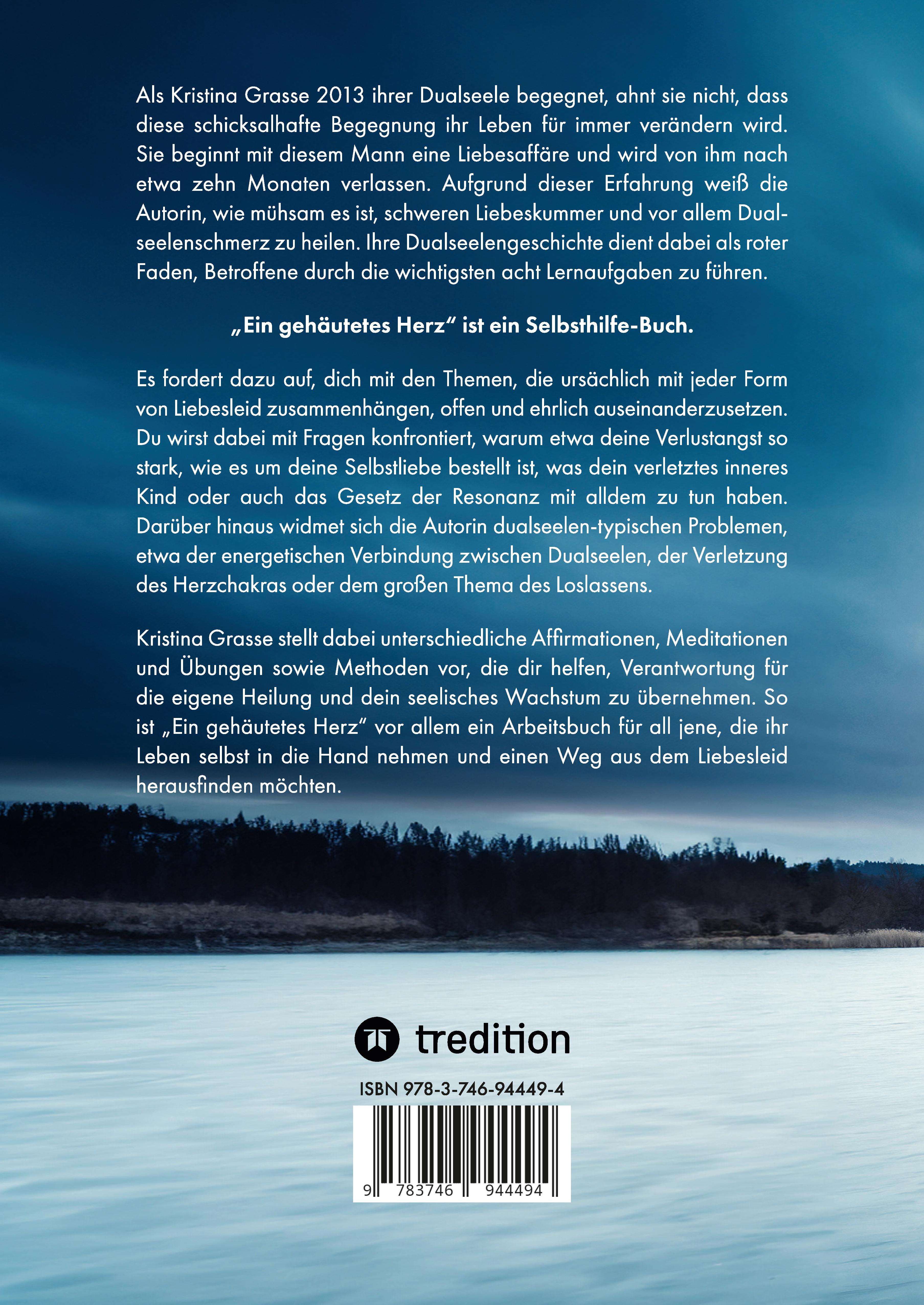 Kristina Grasse - Fachfrau für Dualseelen, Zwillingsseelen und Seelenpartner*innen und Expertin für schweren Liebeskummer: "Das neue Handbuch für Dualseelen und alle (unglücklich) Liebenden" ist ein fast 400 Seiten starkes Nachschlagewerk zum Thema Dualseelen und ein Ratgeber bei schwerem Liebeskummer. Es erscheint am 25.10.2022 in der 2. Auflage (1. Auflage 2017). Kristina Grasse, geb. 1964 in München, lebt und arbeitet dort nach abgeschlossenem Hochschulstudium in den Fächern Europäische Ethnologie, Germanistik und Italianistik als freie Autorin, Lektorin und Korrektorin für verschiedene Verlage. Seit 2016 bietet sie auf ihrer Homepage (www.liebesleiden.de) Beratung zu den Themen Dualseelen und Liebeskummer an und veröffentlicht dazu Bücher: „Das neue Handbuch für Dualseelen und alle (unglücklich) Liebenden. Von A wie Abgrenzung bis Z wie Zeit“ ist ein umfangreiches Standardwerk zu dieser Thematik, alphabetisch geordnet wie ein Lexikon. Die Autorin beleuchtet und analysiert klug, präzise und zugleich hochempathisch und tiefsinnig die wichtigen Fragen, die für alle Betroffenen relevant sind. Etliche der insgesamt 107 Stichworte veranschaulicht die Autorin anregend und sprachlich gewandt u.a. mit Erfahrungen von Klient*innen, die sie im Rahmen ihrer Beratungstätigkeit begleitet (hat). Eine Besonderheit in diesem Handbuch ist die umfangreiche Beschreibung der verschiedenen männlichen und weiblichen Charaktere – ergänzt durch ihre jeweiligen Lernaufgaben. Es verfügt zudem über einen hilfreichen Anhang mit Affirmationen, Übungen, Meditationen und Visualisierungen. „Ein gehäutetes Herz – Was tun bei Liebeskummer und Dualseelenschmerz“ (2018 erschienen, update 2023) erzählt die persönliche Geschichte der Autorin – gefühlvoll, sprachlich brillant und schmerzhaft ehrlich. Es führt die Leser*innen Schritt für Schritt durch die Lernaufgaben, die notwendig sind, um das eigene verletzte Herz emotional zu heilen. Und so ist das Buch auch ein Selbsthilfe-Arbeitsbuch, vor allem für die sog. Loslasser*innen sowie für all jene, die sich ihrem seelischen Wachstum selbstverantwortlich und nachhaltig widmen wollen. Im Gespräch sagt Kristina Grasse über sich: "Vieles, was nie in offiziellen Lebensläufen zu lesen ist, halte ich für das Wesentliche im Leben: alle Begegnungen, die uns im Besonderen etwas über unsere Liebesfähigkeit zeigen, und alles, was im weitesten Sinne mit Wahrnehmung, Hingabe und Kommunikation zu tun hat, also das, was uns Mensch sein lässt.“