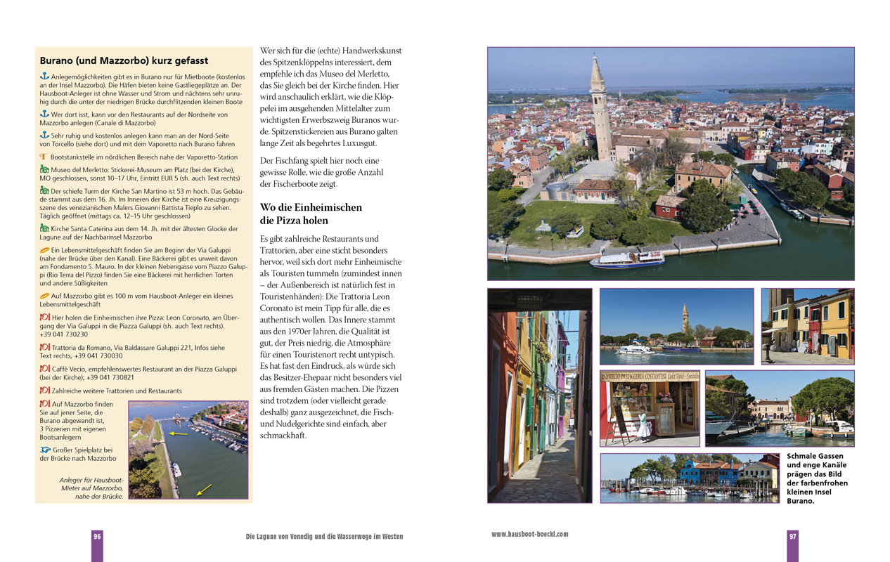 Wo legt man bei Venedig an? Welche einsamen Plätze kann man mit dem Boot ansteuern? Was ist eine Dama, was sind Casoni? Der Autor geht vielen Details auf den Grund und beschreibt sie verständlich, stets illustriert mit Bildern und Übersichtskarten.