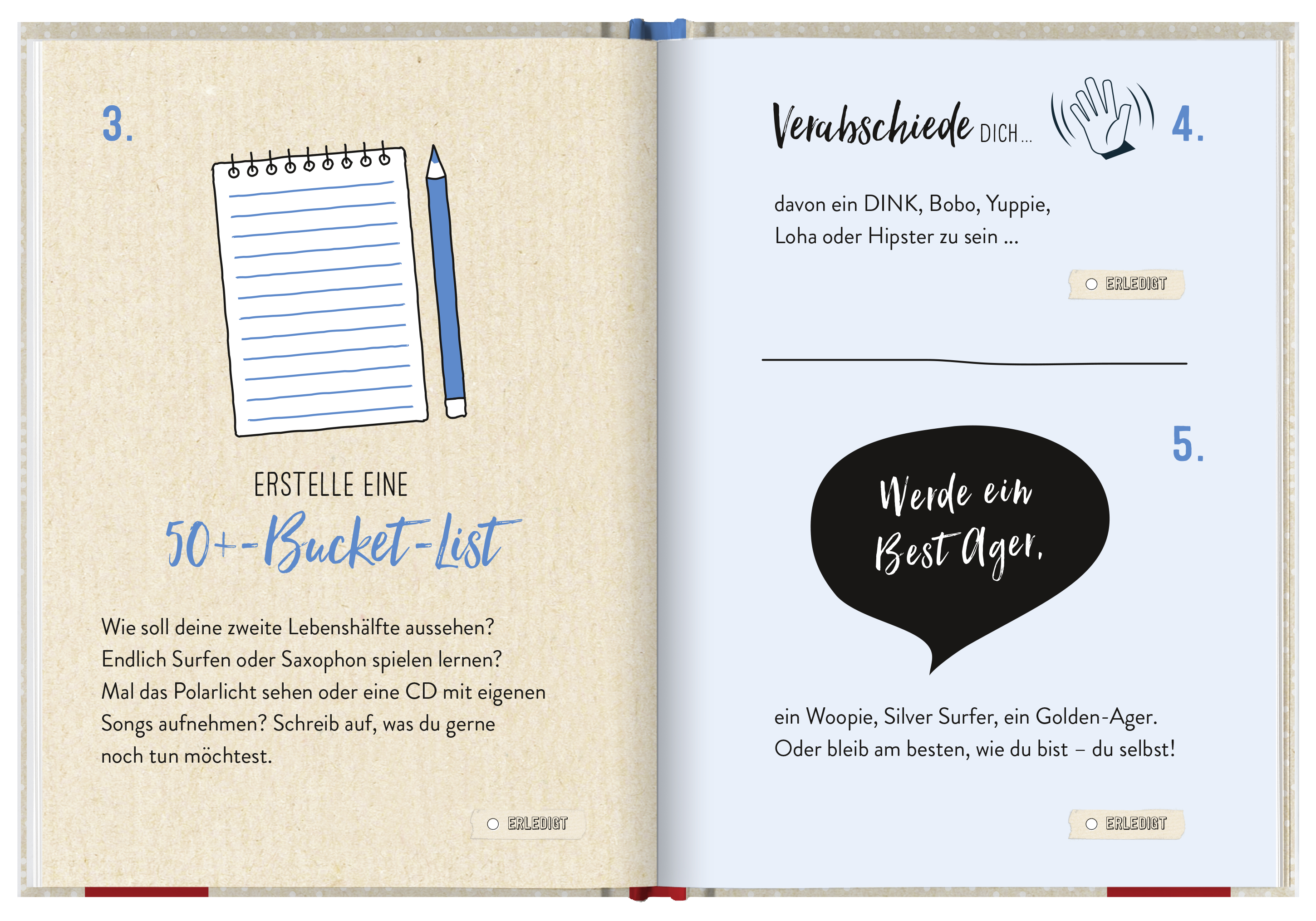 Dieses Buch hat es in sich - nämlich eine 100 Dinge Liste voll Aktivitäten und Anregungen. 100 Dinge, die das Geburtstagskind nach dem 50. Geburtstag unbedingt angehen sollte. Meist sind die Ideen einfach zu erledigen und enthalten kleine Impulse für den Alltag, wie zum Beispiel in alten Fotos stöbern oder ein altes Familienrezept kochen. Zeigen Sie dem Beschenkten mit diesem Ideenbuch, dass es Zeit ist das zu tun, worauf er oder sie Lust hat!