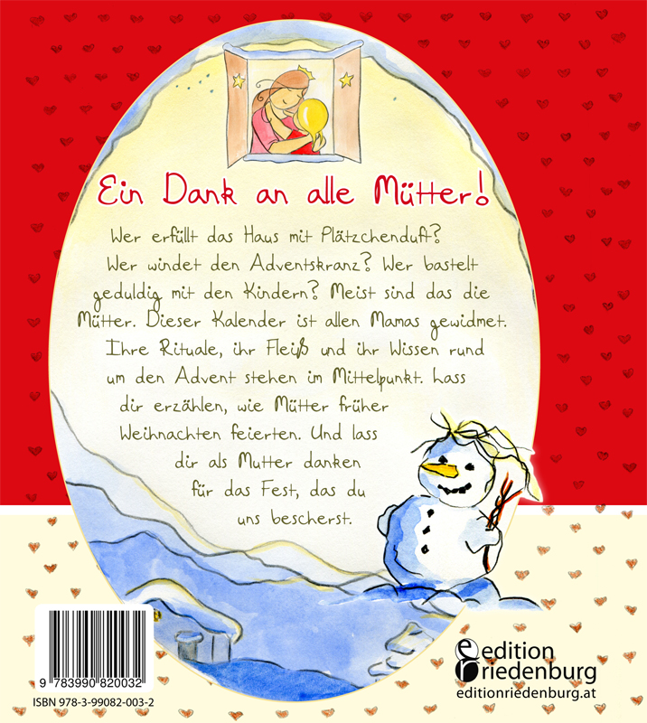 Nun ist es wieder so weit: Die Vorweihnachtszeit beginnt. Nicht nur für die Kinder, auch für ihre Mütter ist der Advent etwas ganz Besonderes. Die Mütter backen, dekorieren, befüllen Stiefel, lesen Wunschzettel und suchen unermüdlich nach dem richtigen Geschenk und der richtigen Gans für den Heiligen Abend. Von Weihnachtskarten und Bastelprojekten nicht zu reden. Den Ruhm für all die guten Gaben und das gelungene Fest überlassen sie großzügig dem Weihnachtsmann oder dem Christkind. Dieser Kalender ist allen Müttern gewidmet. Er begleitet auch dich als Mama im Advent. Er erzählt dir von dir selbst und von deinem Weihnachtsfest. Er ist nur für dich gemacht.