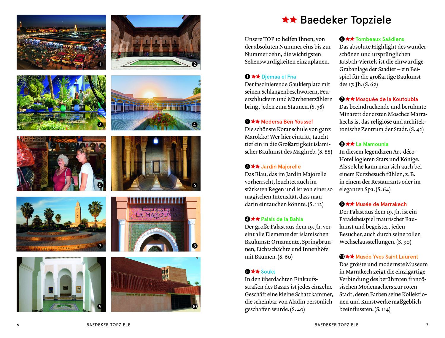 - Tipps für genussvolle »kleine Pausen« in Cafés, Restaurants oder Bars und »magische Momente« in Marrakesch