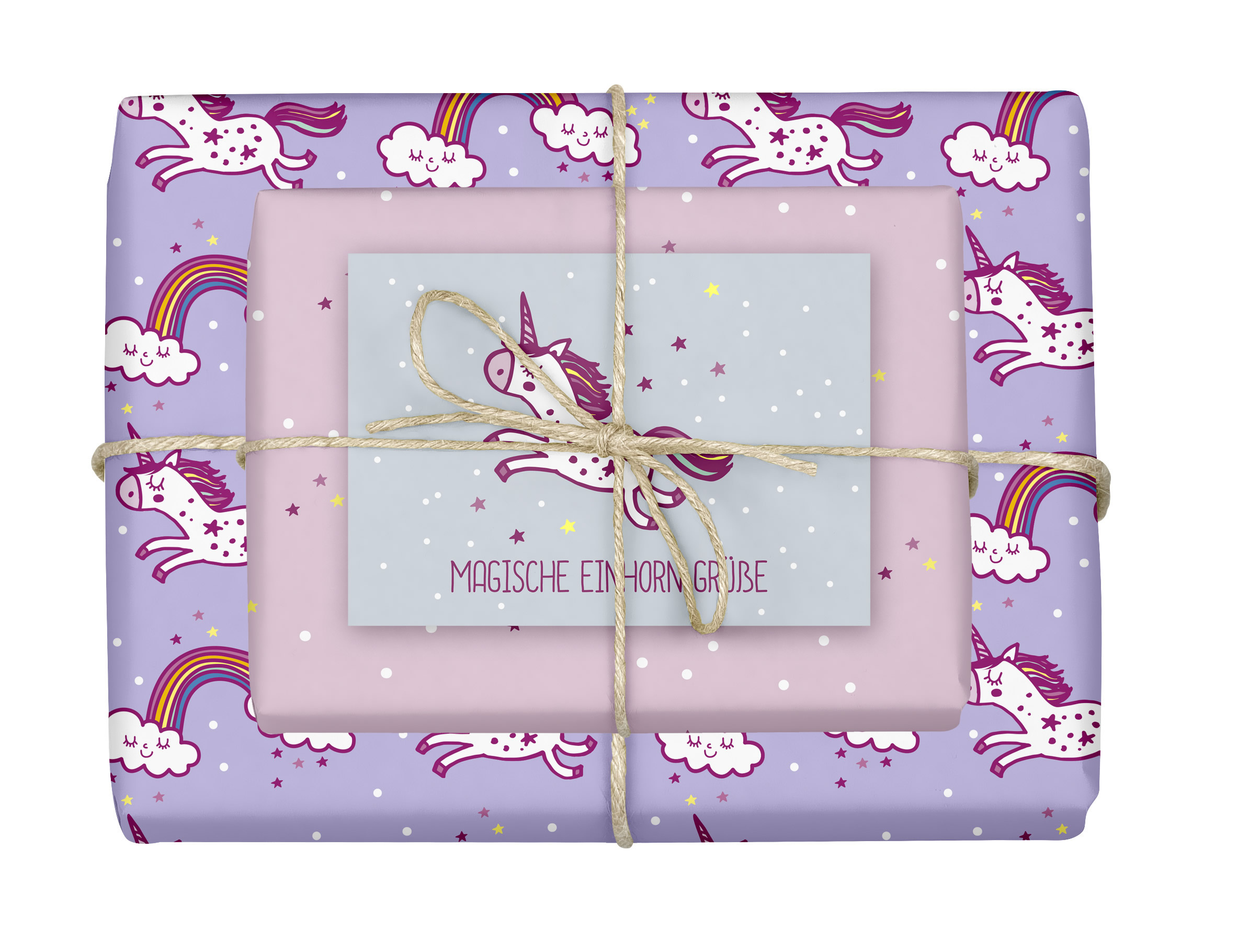 Das Set wird mit einer passenden Einhorn-Postkarte abgerundet, so dass die perfekte Grußkarte zum Geschenk direkt zur Hand ist. Aufgedruckt wurde der Spruch "Magische Einhorn Grüße". Dadurch kann die Einhorn-Glückwunschkarte vielfältig eingesetzt werden, z.B. zum Geburtstag, zur Einschulung oder zu Weihnachten. Und wer möchte, kann das hübsch eingepackte Set auch gleich einem Einhorn-Fan als Geschenk überreichen.
