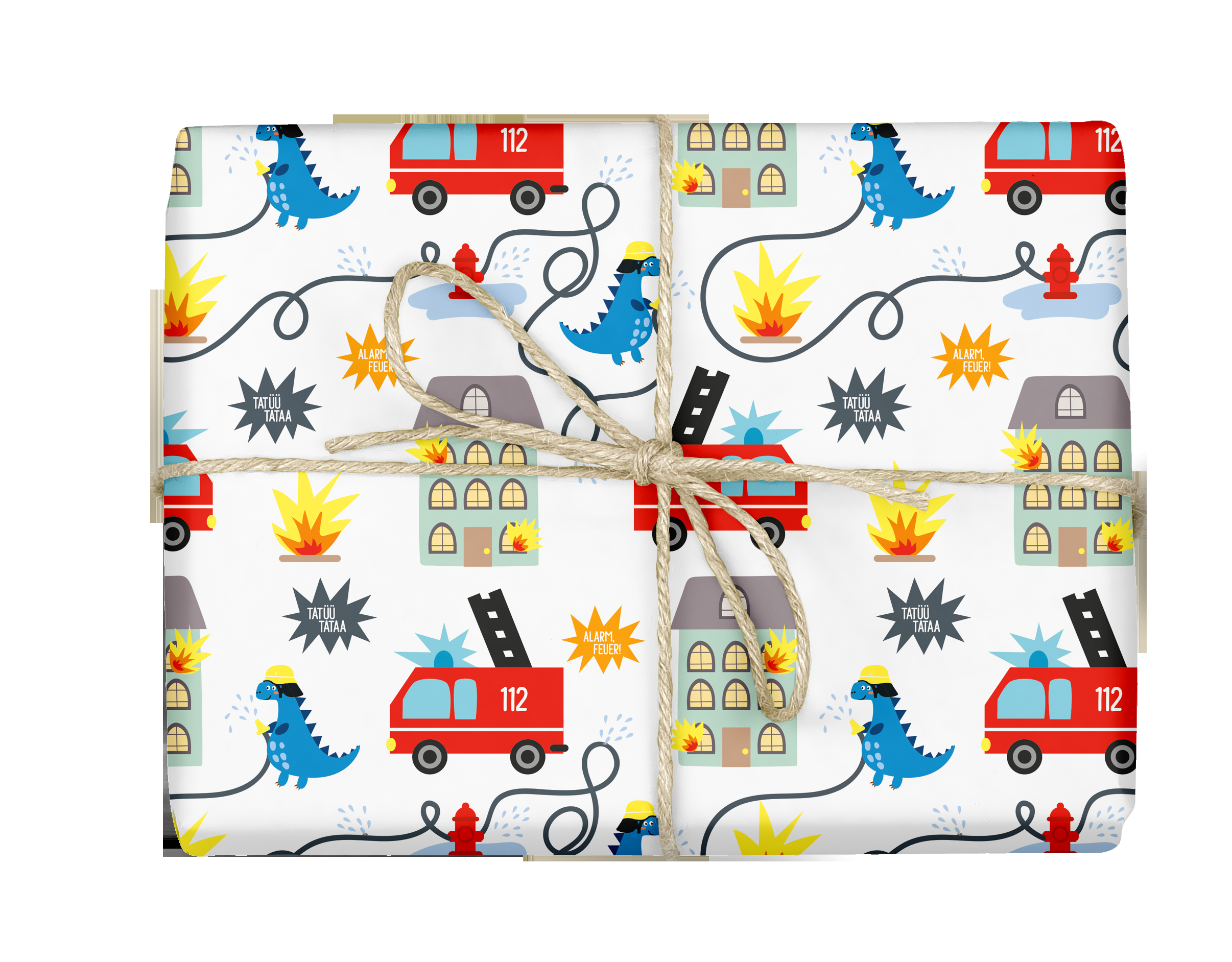 Geschenkpapier-Set für Kinder, Feuerwehr/Dinosaurier