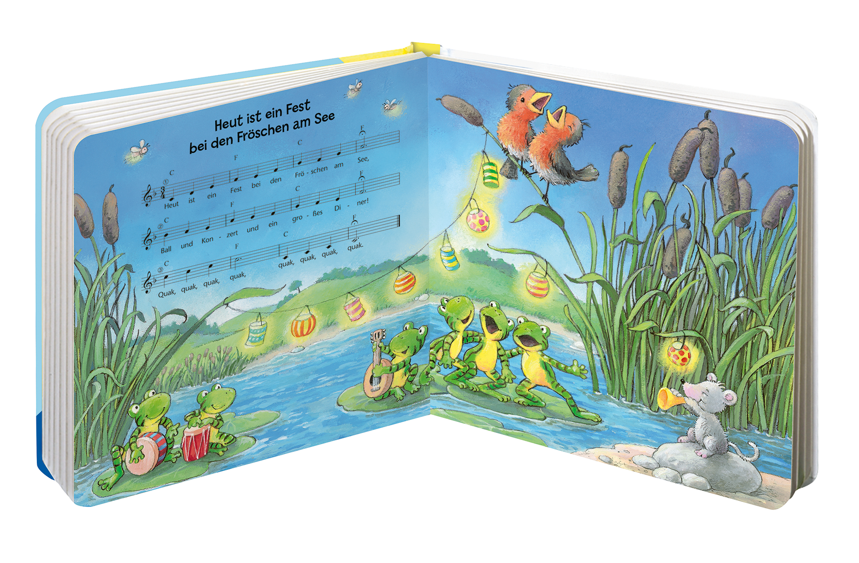 Alle Lieder werden von lustigen Bildern begleitet, die Kleinkinder zum Betrachten und Entdecken einladen. Gemeinsames Singen, egal ob am Tag oder abends zu einschlafen, macht Spaß, schult das Sprachverständnis und hilft den Kleinen beim Sprechenlernen.