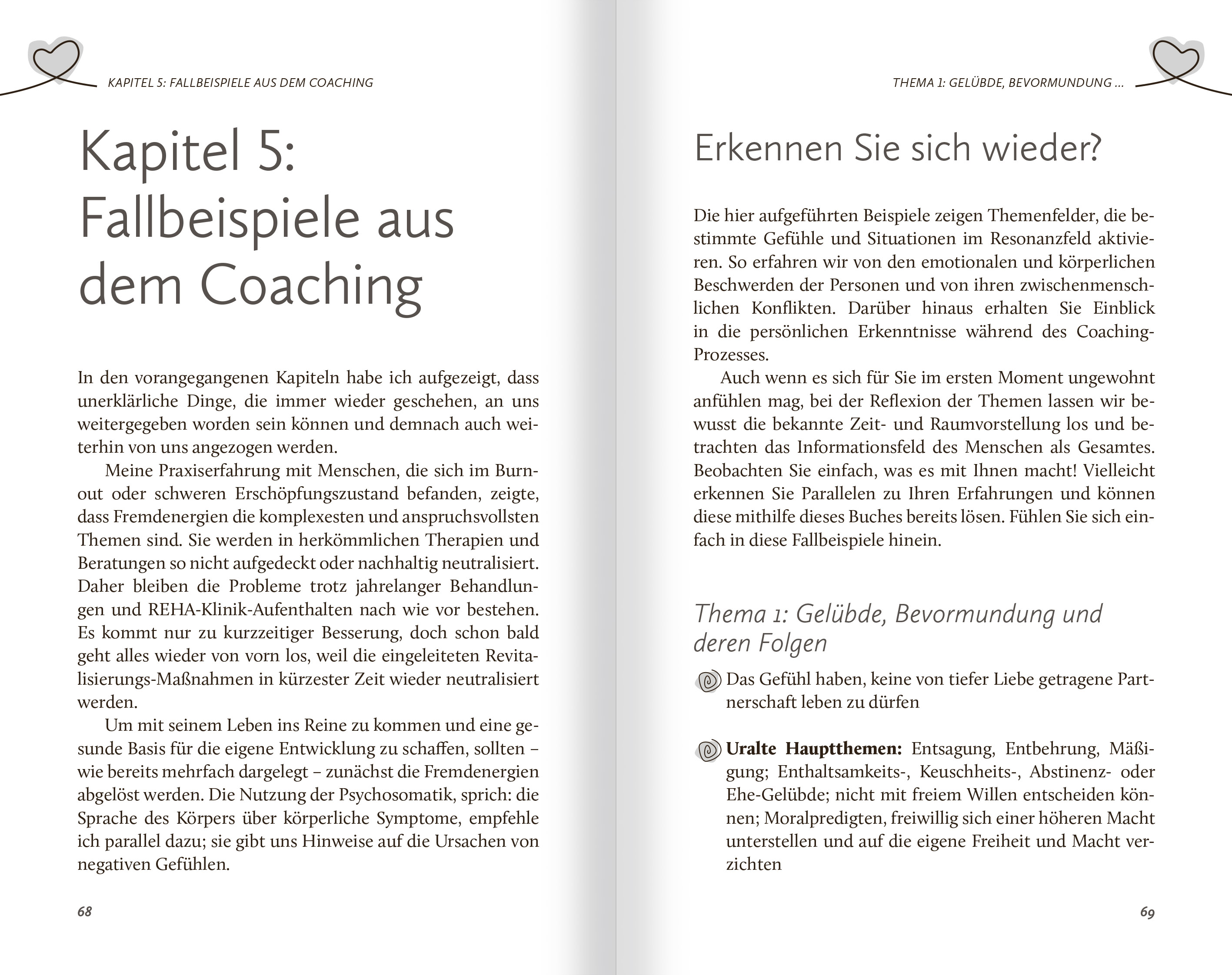 INHALTVorwortGeleitwortEinleitung zum BuchWarum habe ich dieses Buch geschrieben?Was kann und will dieses Buch?Für wen ist dieses Buch geeignet?KAPITEL 1: EINFÜHRUNG UND ZUSAMMENHÄNGEWas sind Fremdenergien?Welche Ursachen haben Fremdenergien?KAPITEL 2: DIE FÜNF NATURGESETZEGesetz der Resonanz oder Gesetz der Anziehung- Was ist die Herz-Resonanz bzw. der Herz-Magnet?Quantenphysikalische WirkkräfteWechselwirkungen im persönlichen UmfeldProjektionen, Spiegelungen und Dualität- Die Dualität - beide Seiten wirkenKAPITEL 3: DER MENSCH ALS INFORMATIONSFELDGesamtzusammenhänge- Wirkkräfte: Alles ist EnergieDie drei Felder Ich, Eltern und Karmisches- Ich, mein Leben- Eltern, Ahnen, deren Leben- KarmischesDie heutigen VeränderungenKAPITEL 4: DIE FREMDENERGIEN = FREMDE ENERGIENFormen fremdenergetischer Einflüsse und BelastungenCheckliste: Hinweise auf FremdenergienZerstörungs- und Sabotage-Programme sowie deren Löschung- Notwendige NeutralisierungsschritteKAPITEL 5: FALLBEISPIELE AUS DEM COACHINGErkennen Sie sich wieder?- Thema 1: Gelübde, Bevormundung und deren Folgen- Thema 2: Macht, Machtlosigkeit, Dominanz, Autorität und deren Folgen- Thema 3: Drohung, Druck, Bedrängnis und deren Folgen- Thema 4: Denunziation, Neid, Missgunst, Intrigen und deren Folgen- Thema 5: Unterdrückung, Grausamkeit, Demütigungen und deren Folgen- Thema 6: Ablehnung, Bevorzugung, Benachteiligung und deren Folgen- Thema 7: Kaltherzigkeit, Mangel an Liebe, Sexualität und deren Folgen- Thema 8: Doppelmoral, Täuschungen, Scheinheiligkeiten und deren Folgen- Thema 9: Betrug, Lug, Hinterhältigkeit und deren Folgen- Thema 10: Schulden, Geldschulden, Verschuldung und deren Folgen- Thema 11: Sabotage, Störung, Zerstörung und deren FolgenZusammenfassungKAPITEL 6: DIE ABLÖSUNG UND NEUTRALISIERUNG VON FREMDENERGIENSchritt 1: Ablöse-Meditation, BefreiungsritualSchritt 2: Neutralisierungsarbeit "Fremdenergien"- Vorarbeit: Eigene Erkenntnissammlung- Hauptarbeit: Neutralisierungstext schreiben und ergänzen mit VorarbeitSchritt 3: Spezialarbeit "Verzauberungen und Verhexungen"- Ergänzungsarbeit "Verzauberungen und Verhexungen"Schritt 4: Spezialarbeit "Geld und Schulden" (optional)- Ergänzungsarbeit "Geld und Schulden"Schritt 5: Ablösung mit Clearing und EnergieflussarbeitKAPITEL 7: DIE ENERGETISCHE KÖRPERARBEITPsychosomatik- Die innere BalanceEnergieblockaden auflösenKAPITEL 8: UNSERE VERSCHIEDENEN PERSÖNLICHEN LANDKARTENDie LebenslandkarteDie Fluchtlandkarte (Flucht, Entwurzelung, Vertreibung)Die Herzlandkarte (Liebe und Partnerschaft)Die SeelenlandkarteDie Rückbesinnung: Was ergibt Sinn?Dankesgruß am SchlussAnmerkungenLiteraturGrafikübersichtStichwortregister