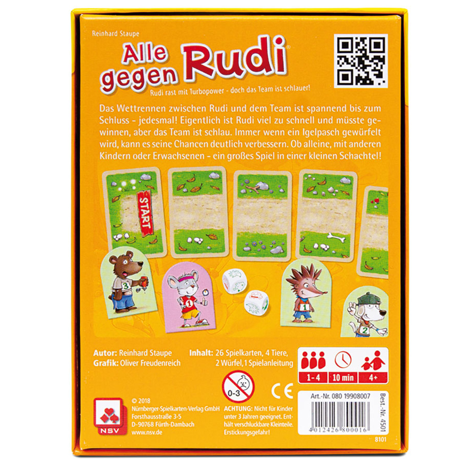 Das Wettrennen zwischen Rudi und dem Team ist spannend bis zum Schluss - jedes Mal! Eigentlich ist Rudi viel zu schnell und müsste gewinnen, aber das Team ist schlau. Immer wenn ein Igelpasch gewürfelt wird, kann es seine Chancen deutlich verbessern. Ob alleine, mit anderen Kindern oder Erwachsenen - ein großes Spiel in einer kleinen Schachtel!