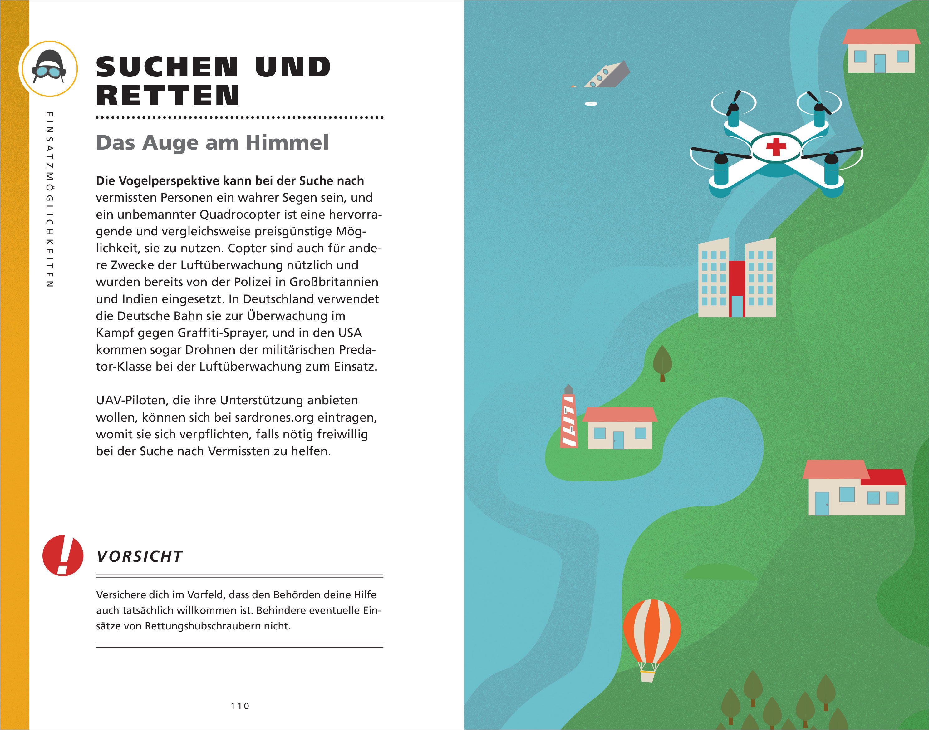 Ob Quadrocopter, Hexacopter oder ein anderer Multicopter: Dieses Buch vermittelt Drohnen-Piloten das nötige Wissen, um ihr Fluggerät sicher zu fliegen, zu warten und optimal zu nutzen. Es stellt verschiedene Typen vor, zeigt Flugtechniken und gibt Tipps für die Verwendung von Drohnen, z.B. bei Foto- und Filmaufnahmen. Auch der Sicherheitsaspekt und gesetzliche Vorgaben kommen in diesem ansprechend illustrierten Handbuch nicht zu kurz.