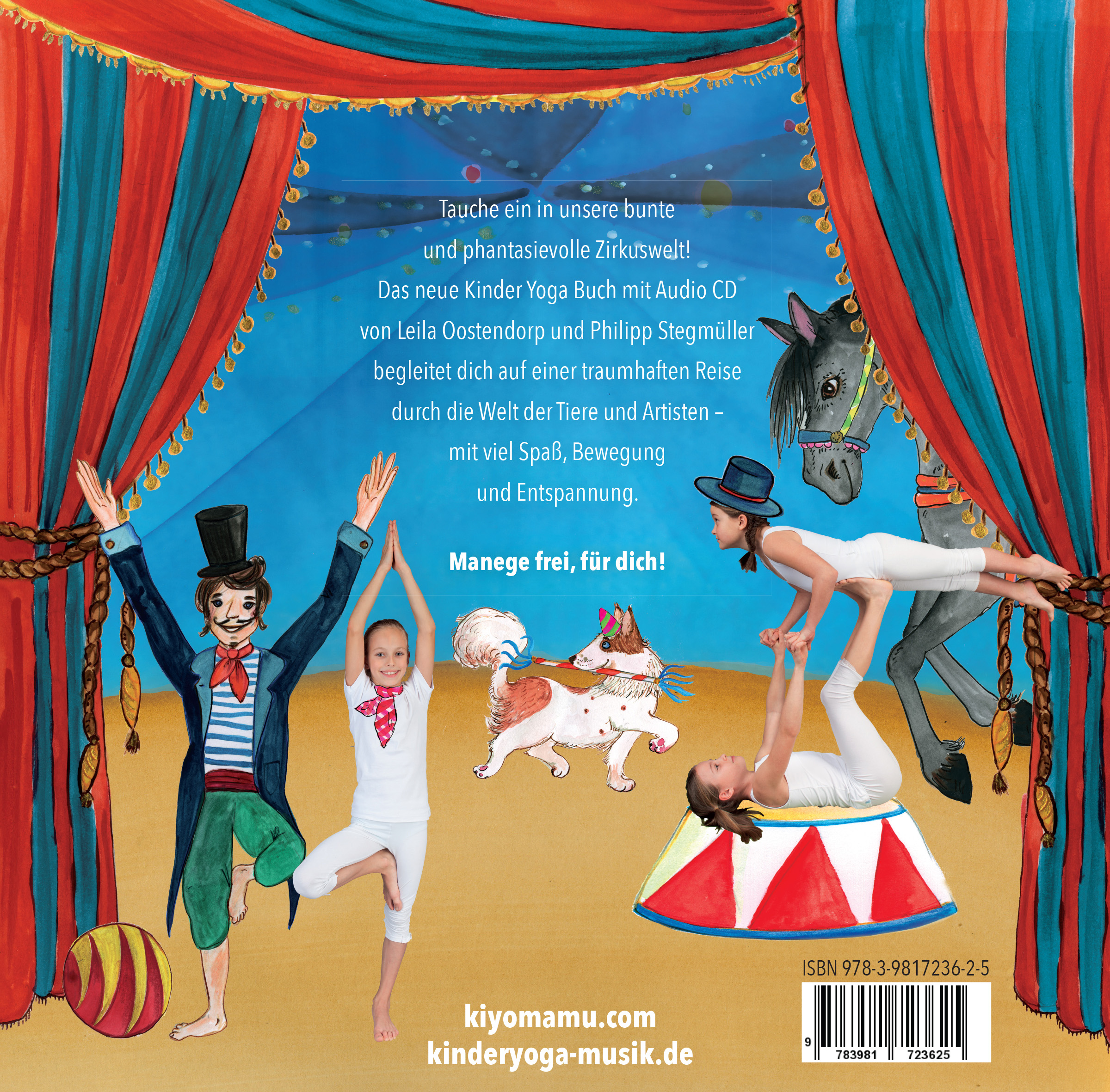 ZIRKUSTRAUM ist eine neue und einzigartige Verbindung aus einem illustrierten Kinder Yoga Übungsbuch mit begleitender Musik CD. Die Lieder und Übungen entsprechen einer 60 minütigen Yogastunde für Kinder. Die besondere, aufeinander abgestimmte Verbindung von Musik und Yoga-Übungen ist auf den Bewegungs- und Atemrhythmus von Kindern ausgerichtet und orientiert sich am klassischen Hatha Yoga Stil. Alle Lieder laden zum Mitmachen und fröhlichen Mitsingen ein. Kiyomamu etablierte erstmalig im deutschen Markt die Verbindung von Yoga-Übungen für Kinder mit dazu eigens komponierten Liedern und ist auch Herausgeber der erfolgreichen CD "Schön, dass du da bist".