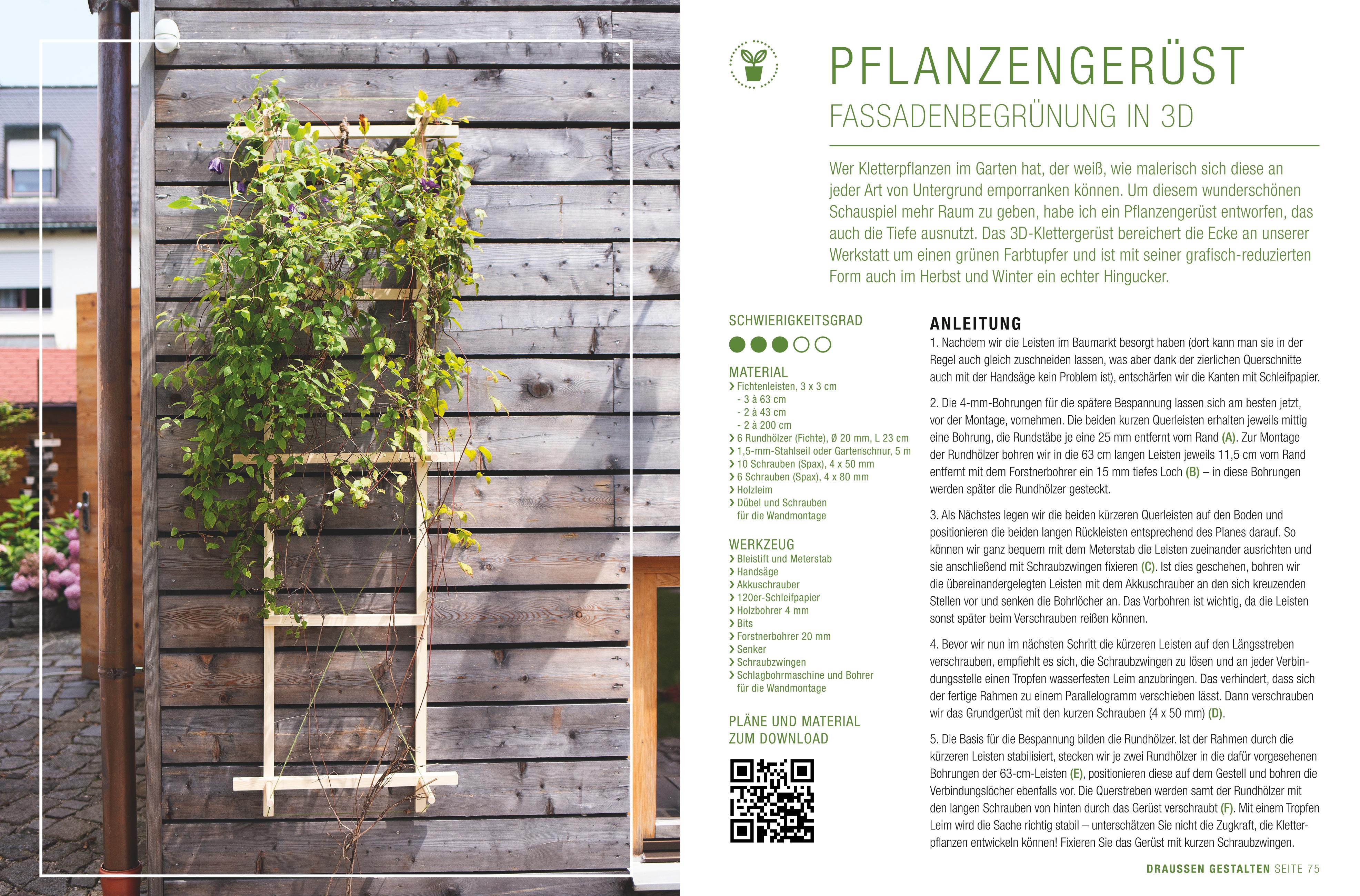 Individuelle Bauprojekte für den Garten, ohne große Vorkenntnisse leicht umsetzbar. Von Liege, Gartenbank und Sonnensegel bis zu Pflanztisch, Hochbeet und Sichtschutz. Detaillierte Schritt-für-Schritt-Anleitungen mit Bauplänen, Fotos und Profitipps. Die wichtigsten Grundtechniken für Heimwerker.