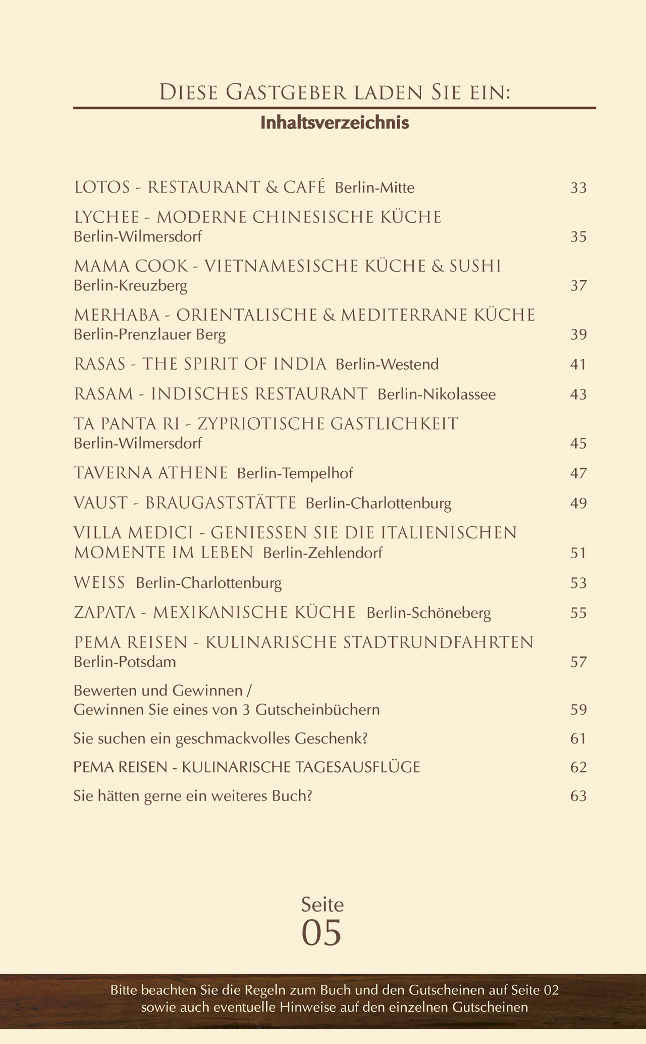 | Schlagworte | 2x Essen 1x Zahlen • Berlin • Coupons • Gastroguide • Genießer • Geschenk • Geschenkidee • Gutscheinbuch • Gutscheinbuch Berlin • Gutscheinbuch für Genießer • Gutscheine • Restaurantführer • Schlemmerträume • Weihnachtsgeschenk |