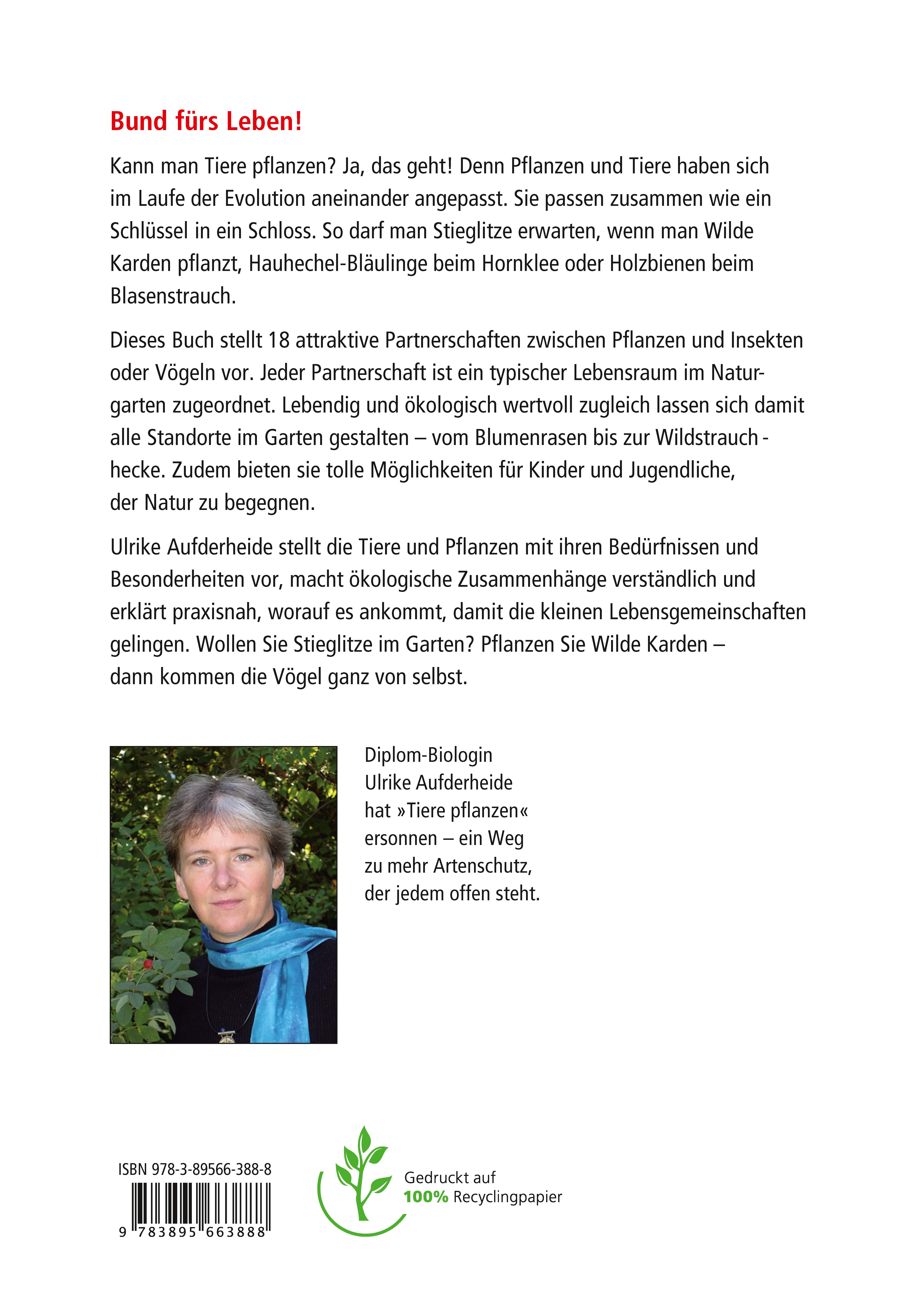 Ulrike Aufderheide stellt die Tiere und Pflanzen mit ihren Bedürfnissen und Besonderheiten vor, macht ökologische Zusammenhänge verständlich und erklärt praxisnah, worauf es ankommt, damit die kleinen Lebensgemeinschaften gelingen. Wollen Sie Stieglitze im Garten? Pflanzen Sie Wilde Karden - dann kommen die Vögel ganz von selbst.