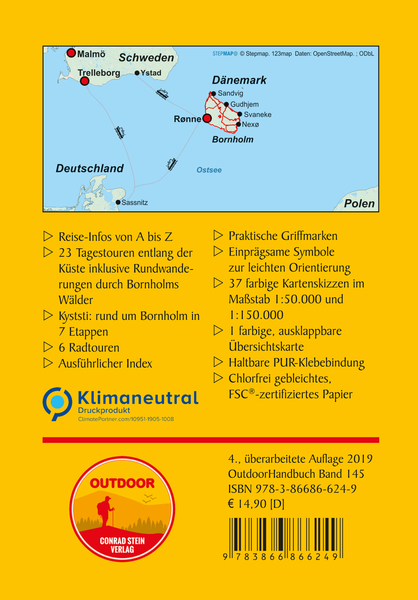 Einleitung, Reise-Infos von A bis Z, Tagestouren entlang der Küste, Kyststi - rund um Bornholm in 7 Etappen, Rundwanderungen durch Bornholms Wälder, Radtouren.