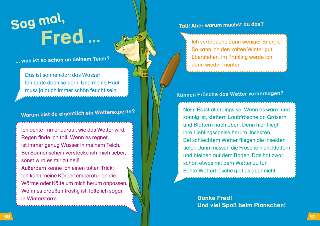 Woraus bestehen Wolken? Wie entsteht ein Regenbogen? Und was ist eigentlich das Klima? Mit Fred, dem Frosch lernen die Leseanfänger, wie die Wettervorhersage gemacht wird, kümmern sich um den Klimaschutz und sehen sich einen Hurrikan vom Weltall aus an.In den Bänden der Reihe WAS IST WAS Erstes Lesen erleichtern die große Fibelschrift und die kurzen Textabschnitte das Lesen. Am Ende jedes Kapitels und des Buches sorgen Lesequiz für Unterhaltung. Einen witzigen Abschluss des Buches bildet das Gespräch mit Fred, dem Wetterfrosch.