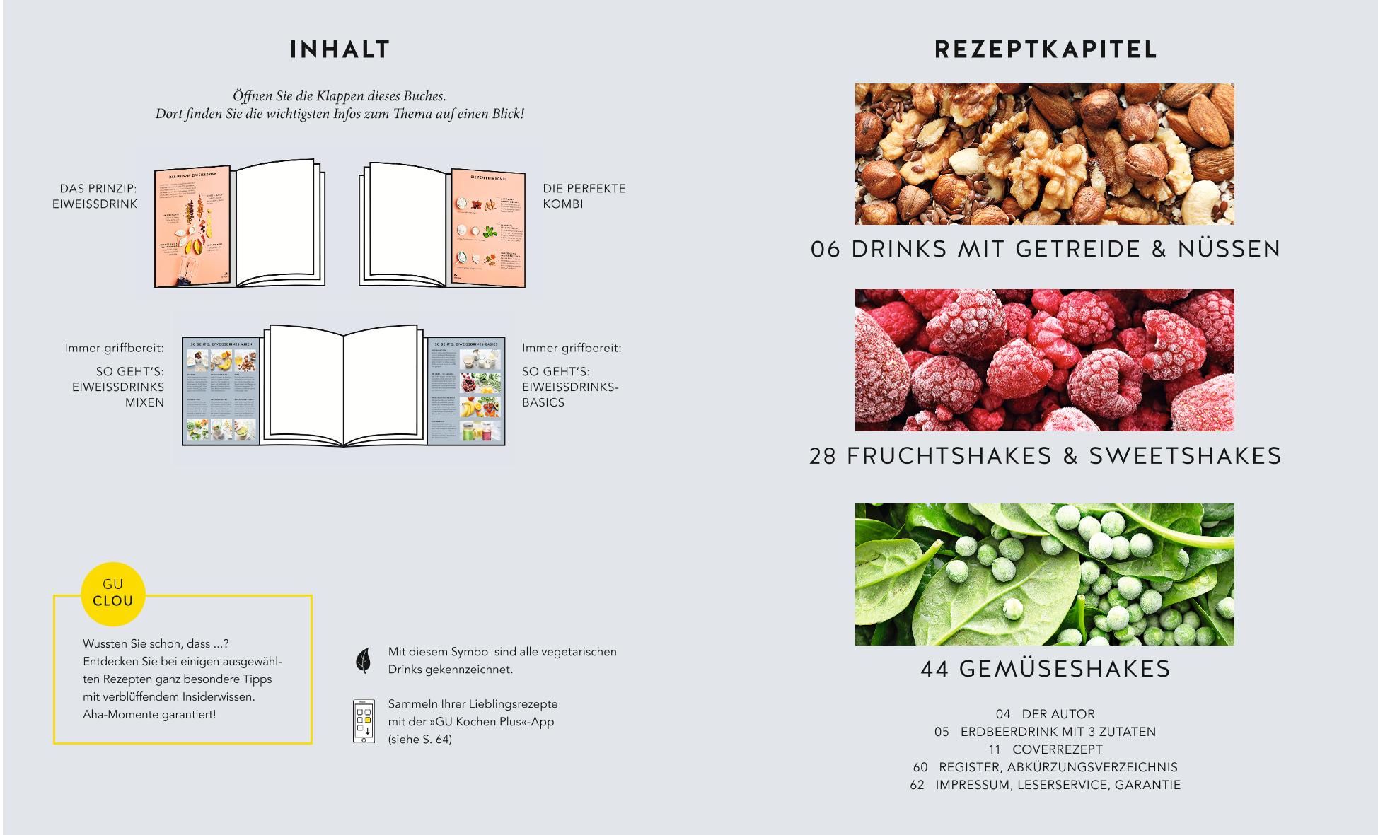 Ganz schnell neue Energie tanken: für Sport zum unterstützenden Muskelaufbau, Fitness, Gesundheit oder ein schlankes Lebensgefühl - Eiweißdrinks sind beliebt wie nie. Machen superschnell satt, halten lange vor, sind extrem praktisch, leicht vorzubereiten, überallhin mitzunehmen und vor allem: gesund. Vorausgesetzt, die Zutaten dafür sind frisch und voller wertvoller Nährstoffe. Das magische Wort dafür heißt: Selber machen! Mit dem GU-KüchenRatgeber Eiweißdrinks kann sich jeder in der eigenen Küche ruck, zuck den individuell passenden Power-Booster mixen. Vom morgendlichen Energieschub über den Muntermacher zur Mittagszeit bis zum Energie-Kick vor Freizeit und nach dem Sport: Die Power-Cocktails auf der Basis von Milchprodukten, Nüssen, Getreide, Früchten, Gemüse oder Tofu - auf rohes Ei wird in den Rezepten verzichtet - sind gesundheitlich wie geschmacklich echte Senkrechtstarter. Der perfekte und schnelle Mix für Gesundheitsbewusste, Abnehmwillige und Fitnessbegeisterte!