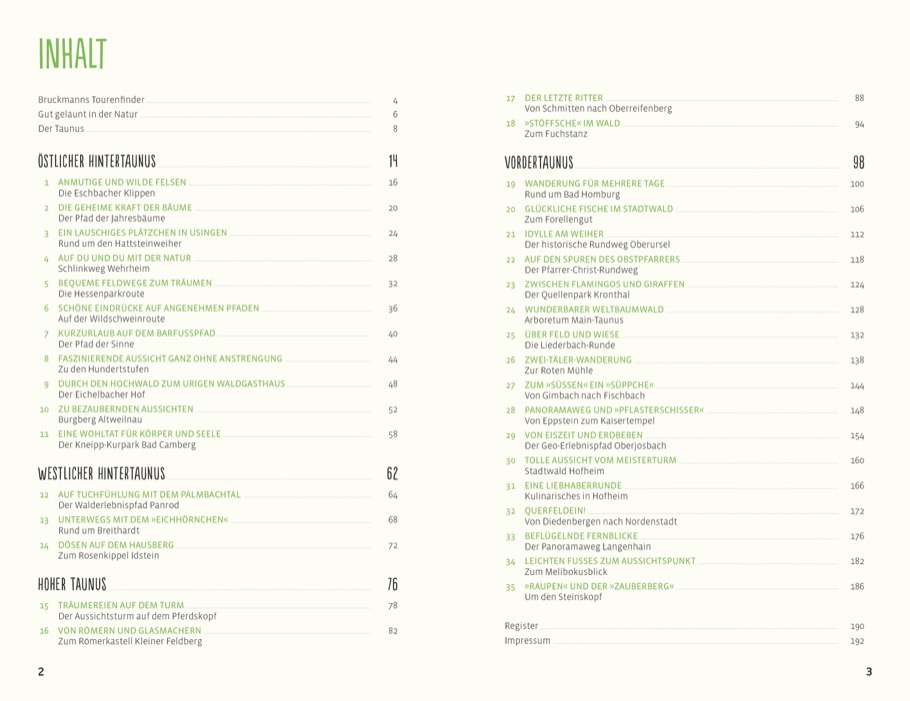 Wandern als Naturerlebnis: das beste Mittel gegen Stress! Doch wo findet man sie, die Glücksmomente in der Natur? Entspannt und ohne große körperliche Anstrengung? Besuchen Sie den Herzberg zum Fuchstanz, erklimmen Sie ganz locker den Hundertstufenweg oder erwandern Sie den kleinen Bruder des Großen Feldbergs. Zu diesen und 32 weiteren Touren für alle Sinne lotst Sie unsere neue Wanderreihe in den Taunus - Genuss- und Entdeckerpausen inklusive.