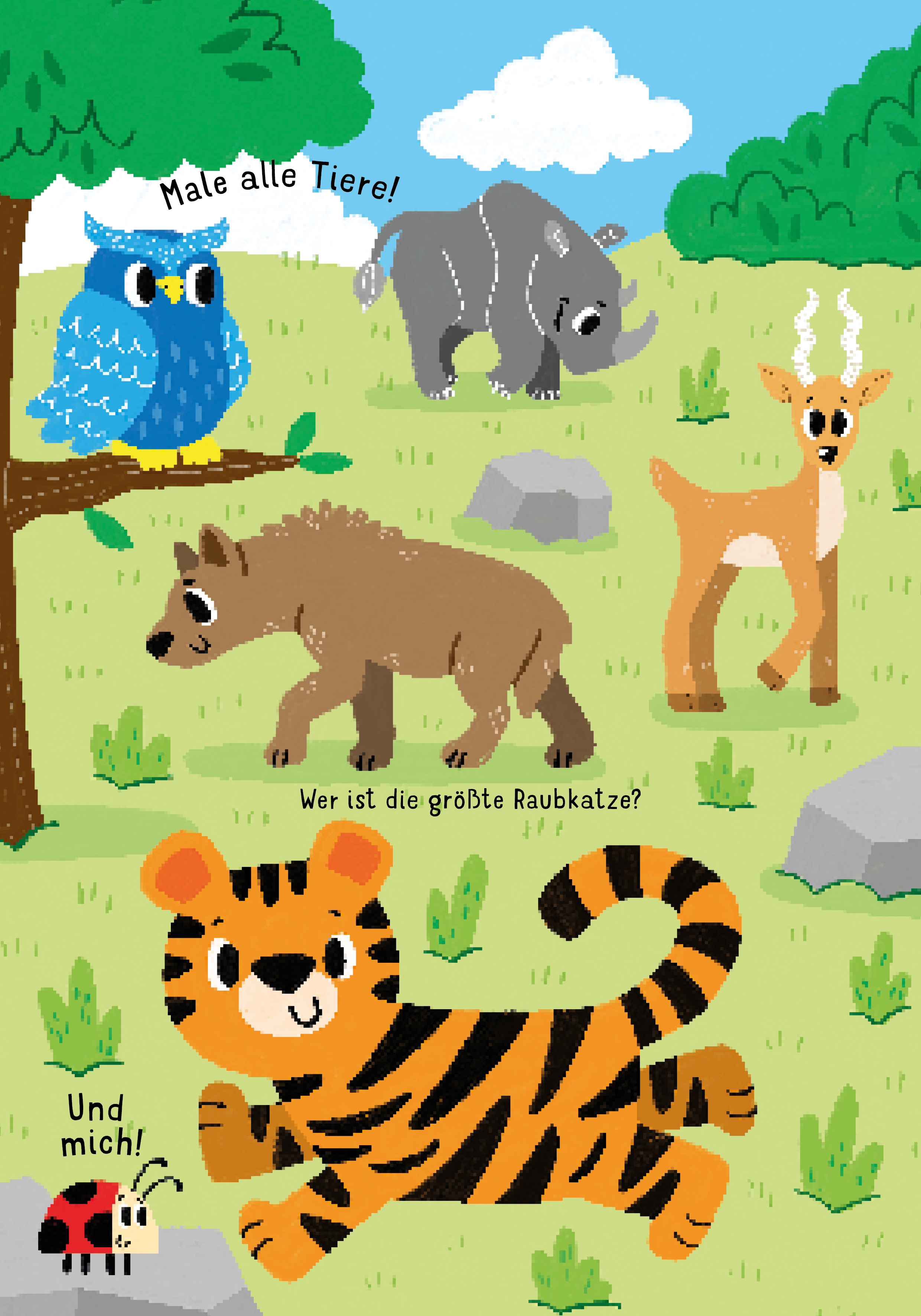 | Schlagworte | Ab 3 Jahren • Ausmalen • Bildwörter • Dschungel • Elefant • erstes Malen • Giraffe • Interaktive Bücher • Löwe • Malbuch • malbuch für kinder • Malbuch mit Tieren • Malen • Malschablone • Malschule • Nashorn • Oase • Origami • Rätsel • Rätselfragen • Savanne • Schablonen • Wachsmalstift |