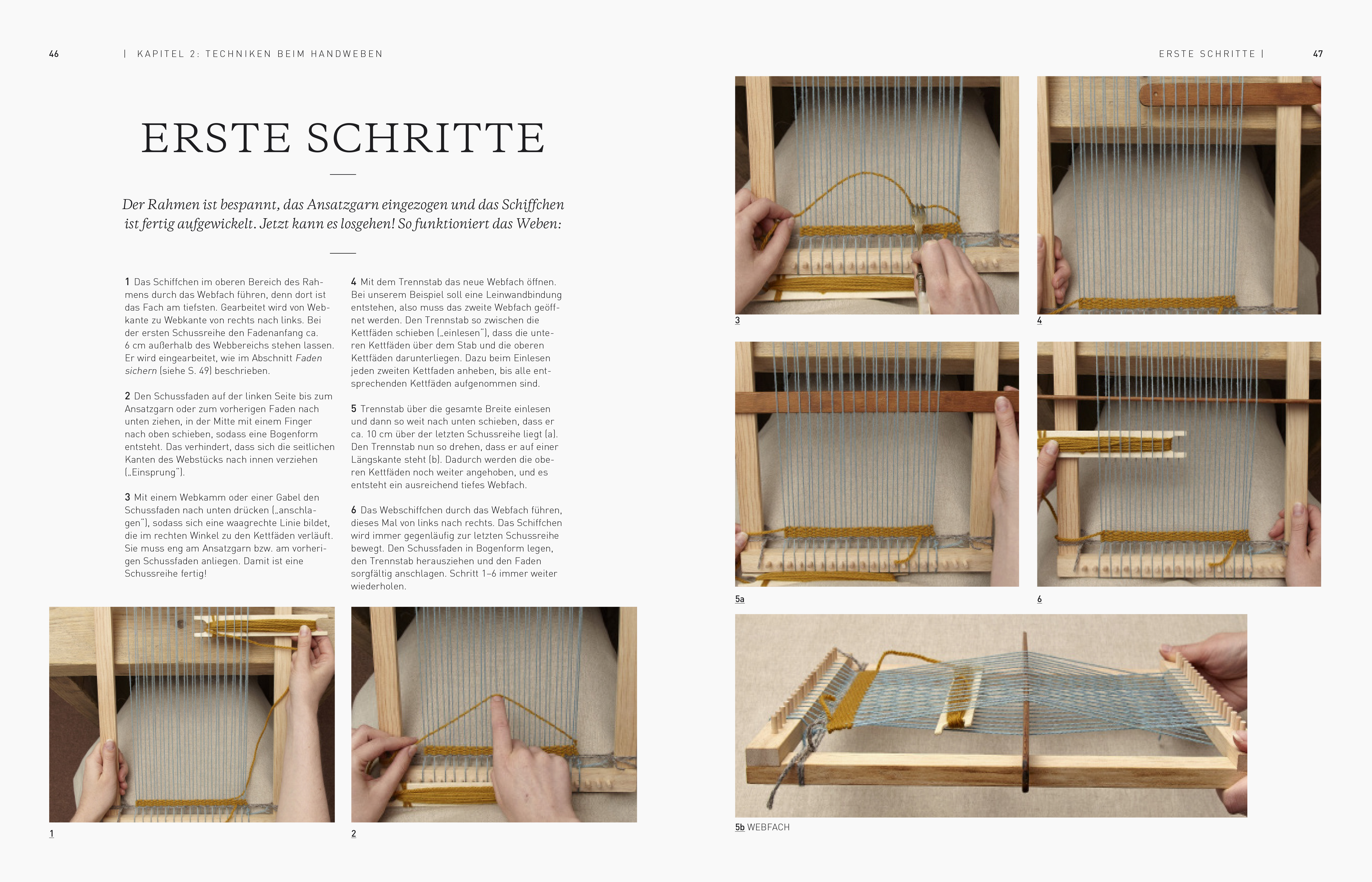 Haben Sie sich für einen Webrahmen entschieden, geht es ans Üben. Dazu wird im Buch die Technik des Webens anhand von 5 Web-Projekten ausführlich erklärt. Sie erfahren alles über die zu verwendenden Garne und Wolle, zu unterschiedlichen Web-Designs und Abschluss-Techniken für jedes Stück: So können Sie Wanddekorationen, Tisch-Sets, Kissenbezüge und Taschen nach kurzem Üben selbst herstellen. Und alle, die danach so richtig warm geworden sind, finden im Buch eine Anleitung für die Gestaltung eigener Muster.