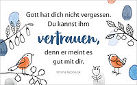 | Schlagworte | Bibelvers • Geschenk • Glück • Glücksmomente • Gott • Impuls • Kärtchen • Karten • Papeterie • Textkarten • Zitate |