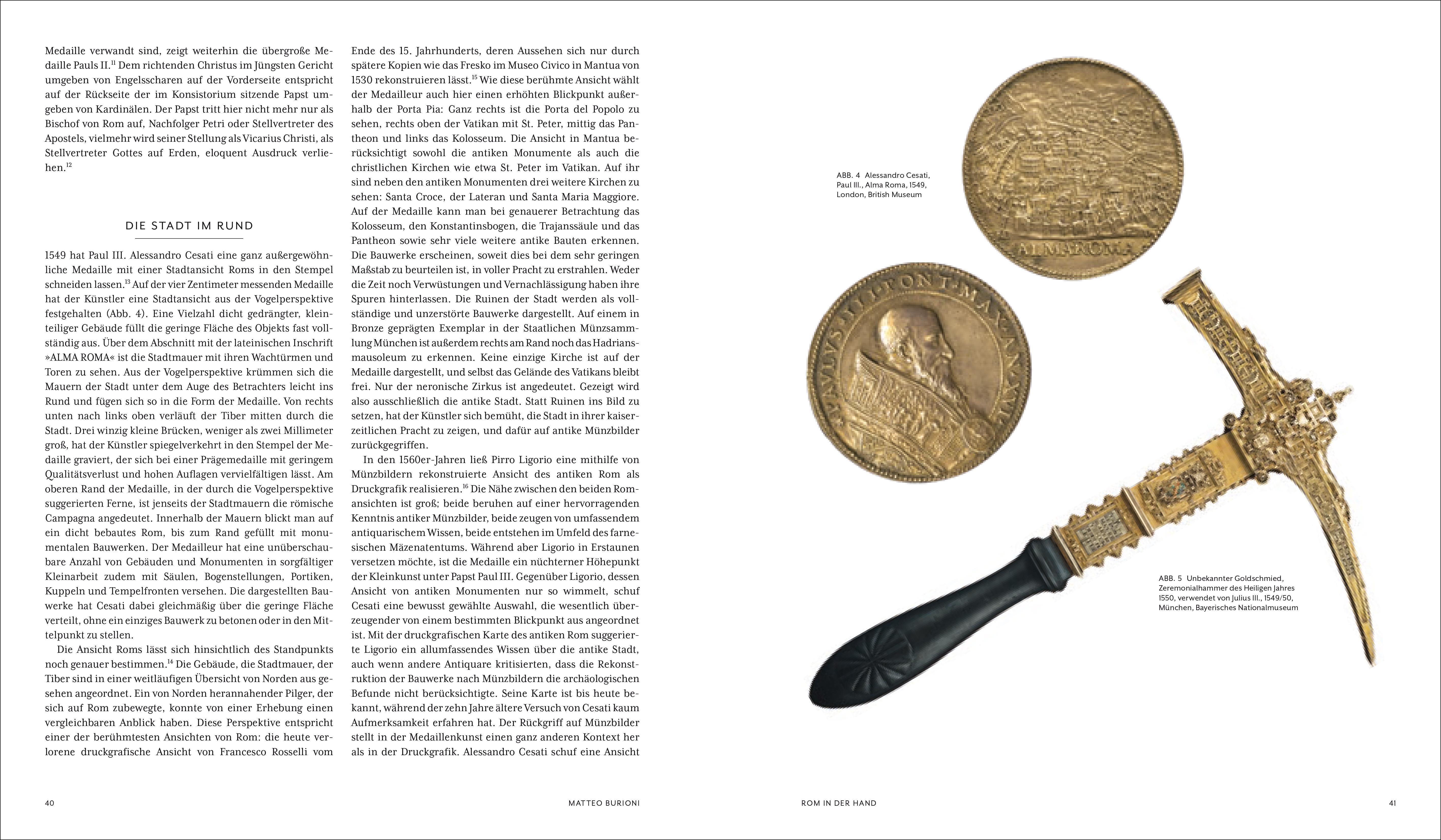 Die glanzvollen Medaillen mit ihrer vielfältigen Motivwahl waren an der Begründung des Ruhmes der Ewigen Stadt maßgeblich beteiligt. Opulent präsentiert der Band Romdarstellungen auf Münzen und Siegeln von der Antike bis ins Spätmittelalter, zeigt den Wandel in der Bildsprache vom 15. zum 17. Jahrhundert und fesselt mit historischen Zusammenhängen und Hintergründen.Antike Münzen und neuzeitliche Medaillen entwerfen ein spannendes Panorama der Geschichte, Kunstgeschichte, Architektur und Archäologie Roms. Dazu zählen neben zahlreichen Papstporträts auch Stadtansichten, Paläste, Hospitäler, Obelisken und berühmte Bauten wie Kolosseum und Petersdom. Als Auftraggeber begegnen uns Päpste, Kardinäle und der römische Adel. Stadtpläne belegen, zu welcher Zeit und für welche Gebäude die Medaillen gefertigt wurden. Beleuchtet werden zudem der Austausch und die Konkurrenz innerhalb Italiens und Europas und die Kultur des frühen Sammelns.