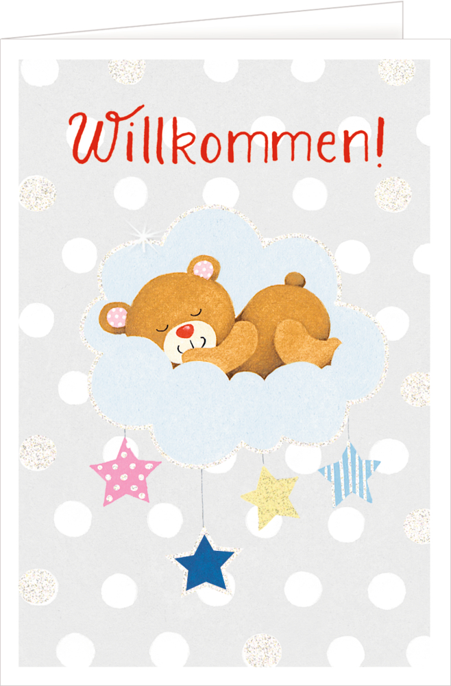 Wunderschön veredelte Grußkarten mit schimmerndem Glitter für besonders liebevolle Glückwünsche zu Geburt und Taufe.