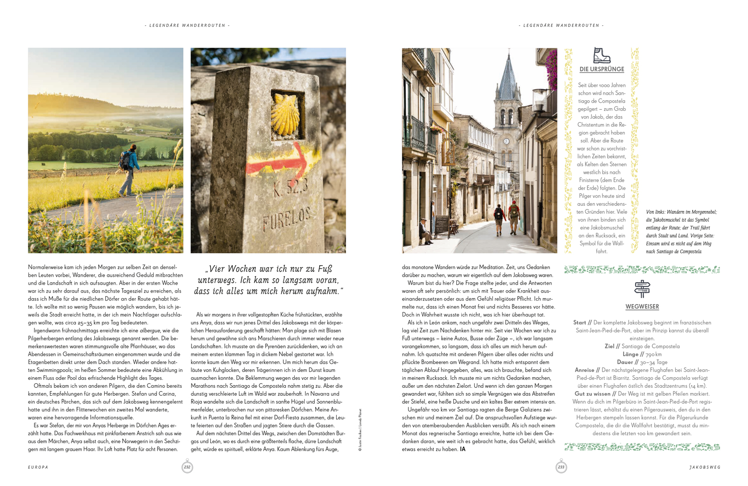 Von Küste zu Küste auf dem Hadrianswall (England)Die vierzehn Gipfel von Snowdonia (Wales)Vier Tage auf der Via Alpina (Schweiz)Wild, blau, weit: Der Selvaggio Blu (Italien)Leitsterne durch den Kaukasus (Georgien)Erde, Wind und Feuer: Laugavegurinn (Island)Der Jakobsweg (von Frankreich nach Spanien)Auf der Trollzunge (Norwegen)Der Ring of Steall (Schottland)