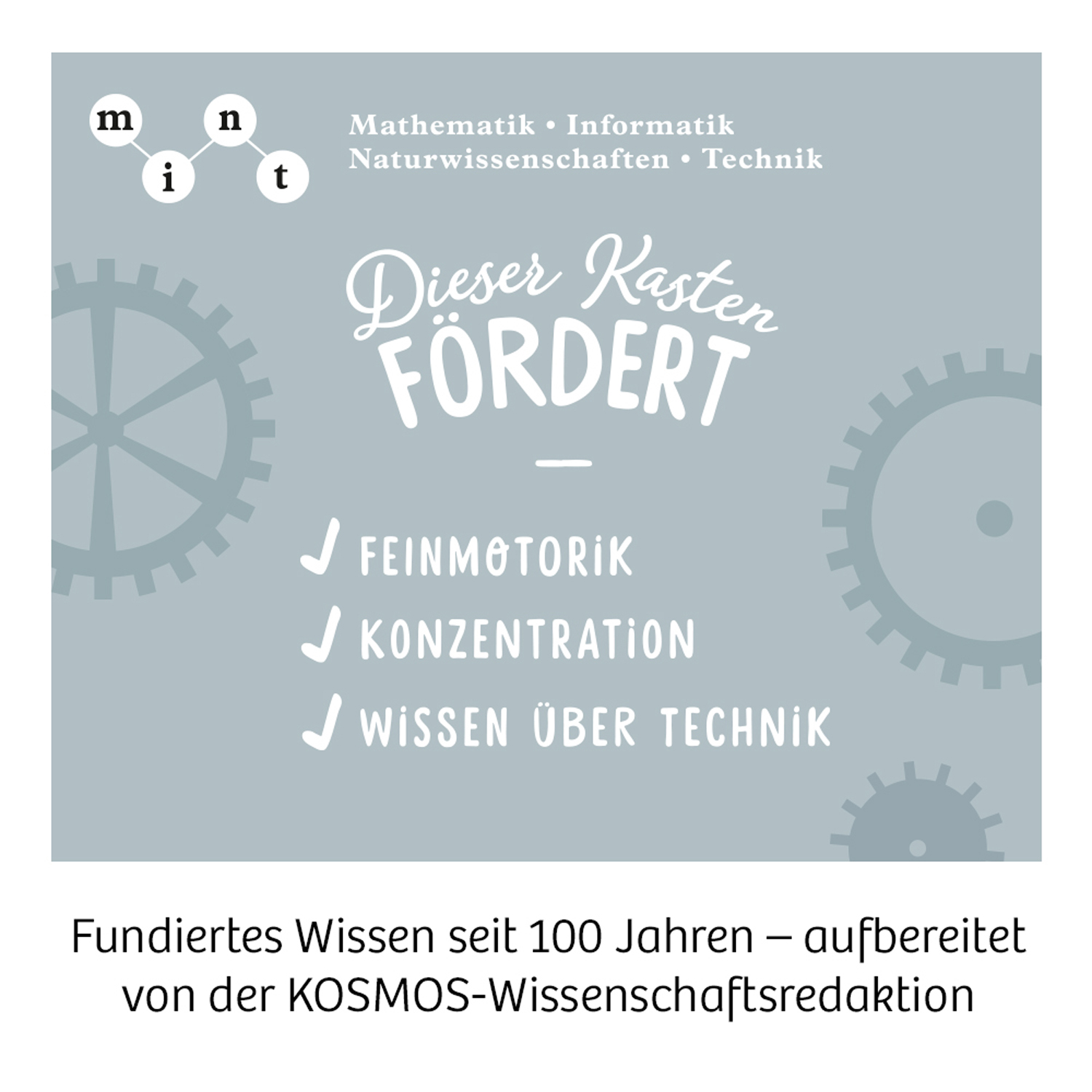 gt; Stecken, klicken, schrauben - ganz ohne Klebstoff entsteht der Roboterarm in diesem hochwertigen Modellbausatz. > Die 5 Motoren lassen sich über eine Steuereinheit bedienen und machen eine präzise Bewegung um bis zu 300° möglich. Im Dunkeln kommt die LED-Beleuchtung zum Einsatz! > Genau das Richtige für Kinder von 10 bis 14 Jahren, die Lust am Bauen haben. > Die altersgerechte Anleitung führt in die Welt der Robotik ein und erklärt das Zusammenbauen detailliert und Schritt für Schritt. > Ein KOSMOS Experimentierkasten für alle, die Technik entdecken und erleben wollen. Stecken, klicken, schrauben - ganz ohne Klebstoff entsteht dieser hochwertige elektrische Roboterarm von KOSMOS. 5 Motoren lassen sich über eine eigene Steuereinheit bedienen, so dass sich der Roboterarm um 5 Achsen bis zu 300° präzise bewegen kann. Auch im Dunkeln ist der Spaß noch nicht zu Ende, denn jetzt kommt die LED-Beleuchtung zum Einsatz! Spannende Experimente warten somit auf Kinder von 10 bis 14 Jahren, wenn sie ihren Roboterarm drehen, strecken oder beugen, ganz wie man es von großen Fertigungsstrecken kennt. Mit präzisen Zeichnungen erklärt die Aufbauanleitung Schritt für Schritt, wie der Zusammenbau richtig funktioniert. Darüber hinaus finden die Nachwuchs-Ingenieure dort aber auch viel Hintergrundwissen zum Thema Robotik und Technik.