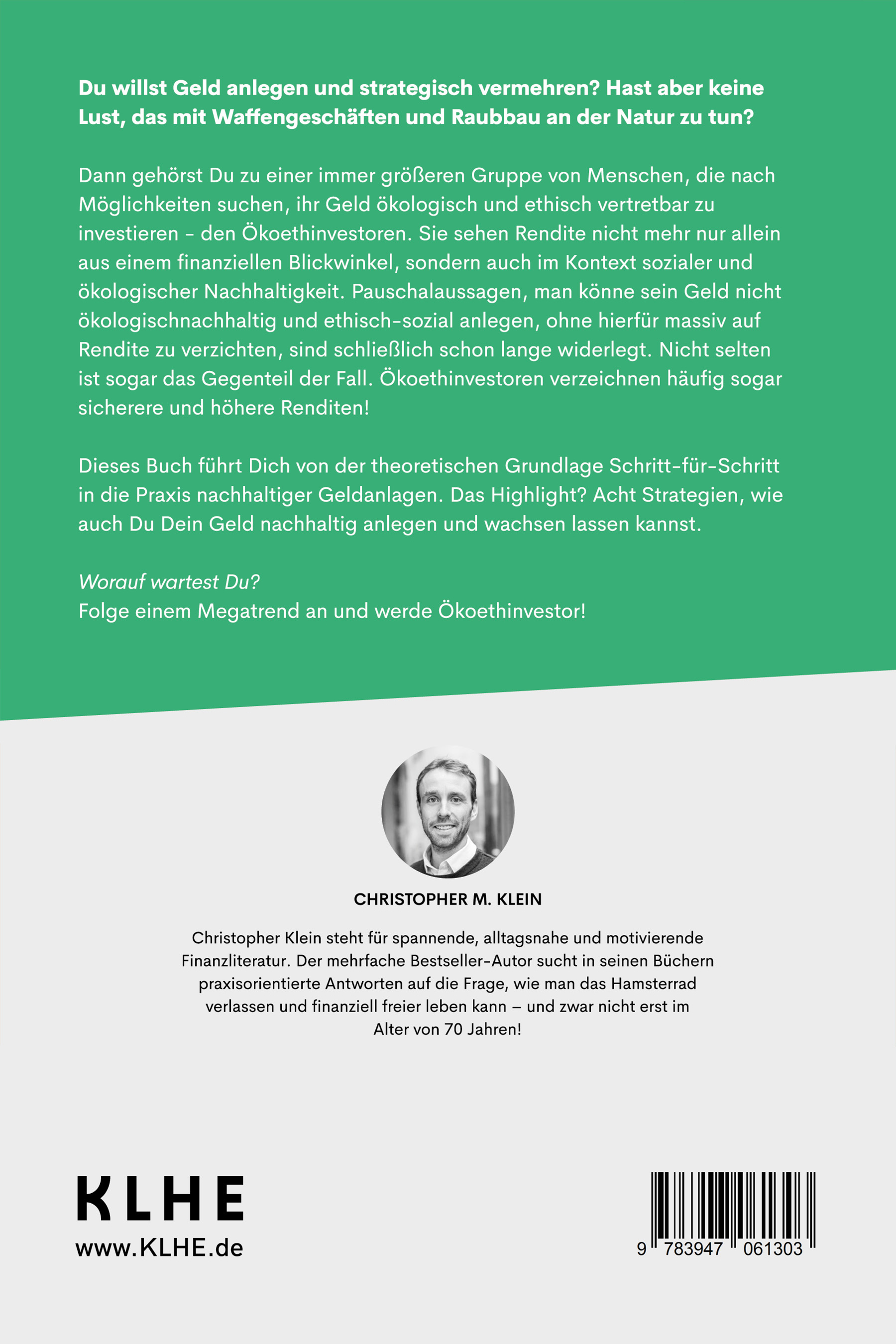 Christopher Klein steht für spannende, alltagsnahe und motivierende Finanzliteratur. Der mehrfache Bestseller-Autor sucht in seinen Büchern praxisorientierte Antworten auf die Frage, wie man das Hamsterrad verlassen und finanziell freier leben kann – und zwar nicht erst im Alter von 70 Jahren!