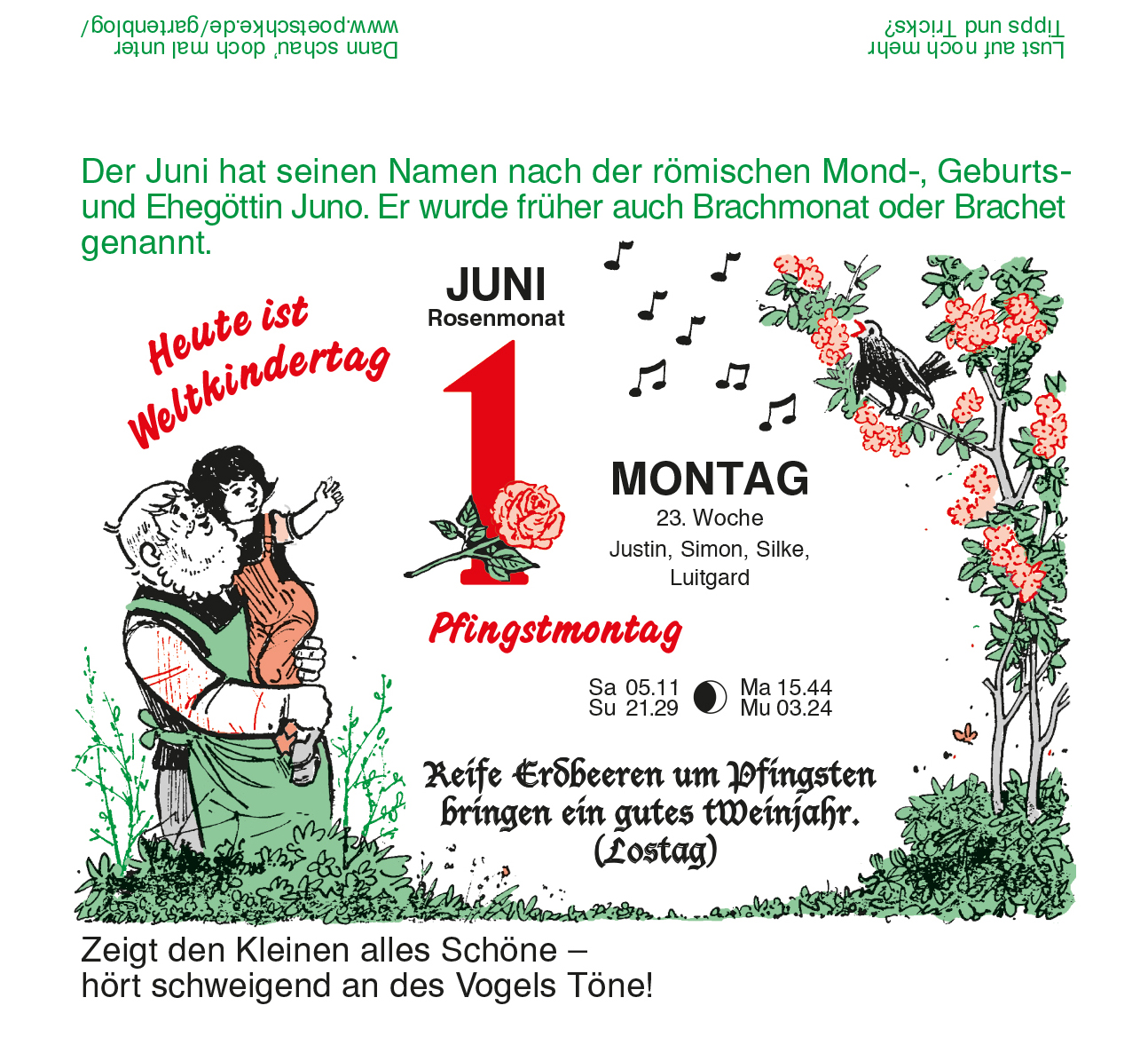 Jetzt mit der bekannten Klammer vom kleinen Kalender „Der GRÜNE WINK®“ zum leichten Abreißen der Blätter und dekorativer Rückwand zum Aufhängen an der Wand.
