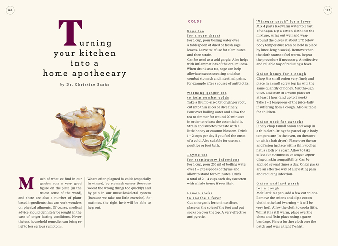 Christine Saahs is a passionate cook and farmer. She lives and works at the Nikolaihof, Austria’s oldest vineyard, well known for biodynamic agriculture and Demeter certified resources. Dr. Christine Saahs is a physician and Christine Saahs’s daughter. For this book, she contributes health tips for body and mind as well as her knowledge on medical plants and their effects. Ulrike Köb is a food and still life photographer based in Vienna. Her passion for colour, light and style drew her towards photography. Requisites from all over the world are part of her visual compositions. Her work has been featured in multiple publications and in exhibitions in Oman, Korea, London, Venice and Budapest. www.koeb.at