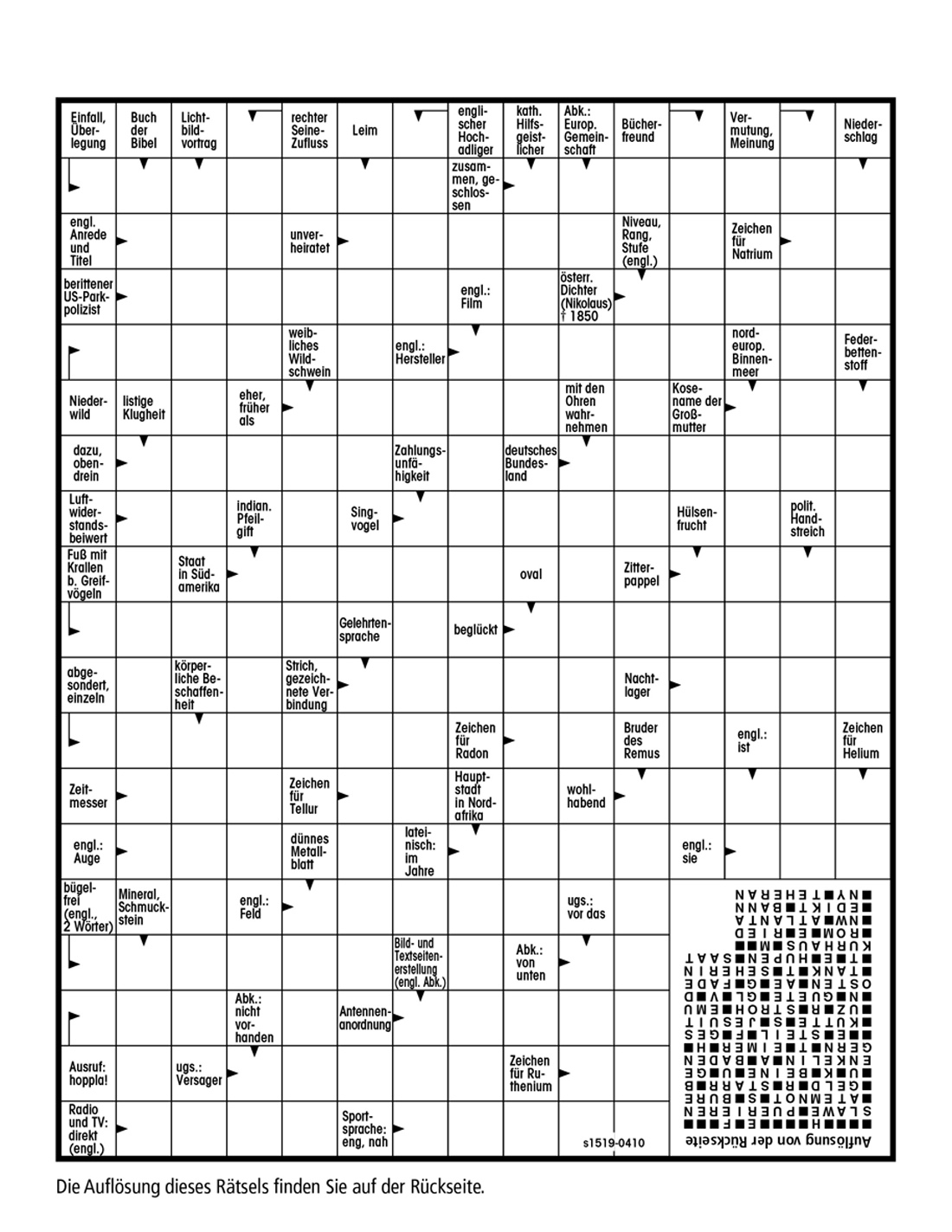 | Schlagworte | Auszeit • Bände • Beschäftigung • block • Erwachsene • Freizeit • Freizeitbeschäftigung • Freizeitspaß • Gehirntraining • Geschenk • Geschenkidee • Knobeln • Kreuzworträtsel • Langweile • lösen • Rätsel • Rätselblock • Rätseln • Schenken • Spaß • Übung |