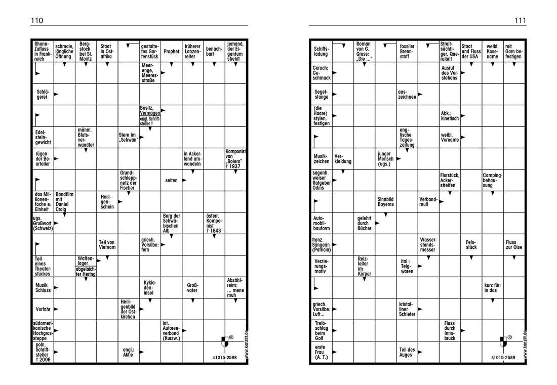 Zahl einfügen neue Kreuzworträtsel lassen keine Zeit für Langeweile. Wer sie löst schult Geist und Verstand, bestätigt und ergänzt auf unterhaltsame Weise Wissen und Kombinationsvermögen. Ob allein oder in Gesellschaft, ob daheim oder unterwegs - Rätselfreunde werden begeistert sein.