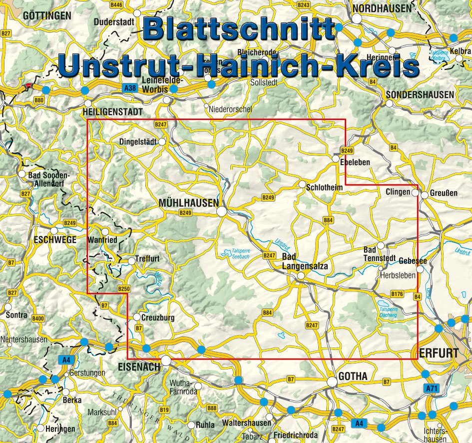 Die neue Reiß- und Wetterfeste Rad- und Wanderkarte "Unstrut-Hainich-Kreis" stellt den Landkreis mit dem Rad- und Wanderwegenetz vor und schließt an die Rad- und Wanderkarte Landkreis Eichsfeld, Wartburgkreis und Kyffhäuserkreis an.