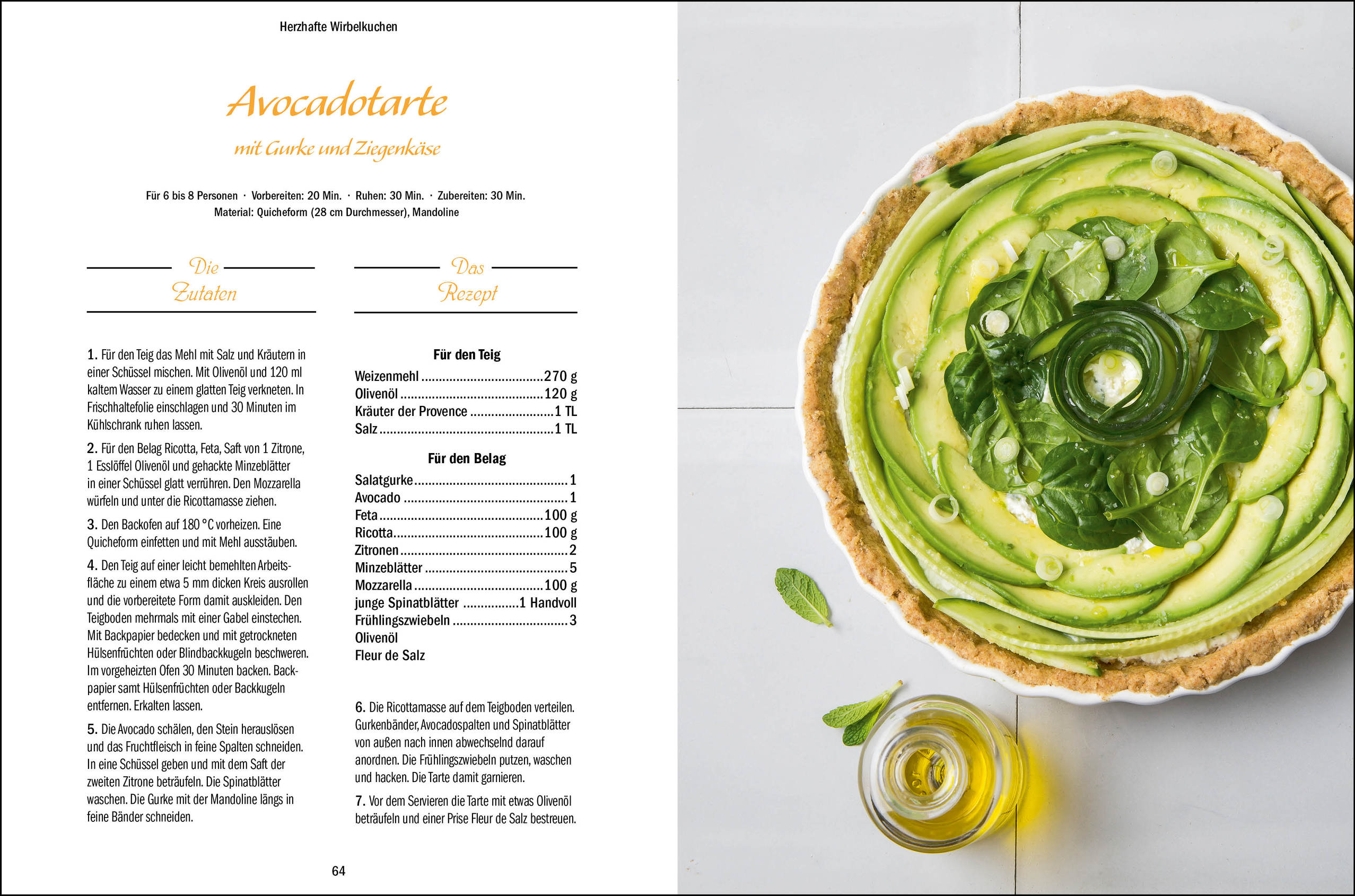 Dieses kleine, aber feine Büchlein bietet 30 Rezepte für Kuchen, Tartes und Törtchen mit dem besonderen Dreh. Denn alle süßen und herzhaften Versuchungen überzeugen nicht nur geschmacklich, sondern ziehen Gäste, Freunde und Familie schon vorher durch ihre raffinierte Spiral-Optik in den Bann. Vom beliebten Erdbeerkuchen über das klassische Kartoffelgratin bis hin zur Avocado Tarte oder Pistazien-Feigen-Törtchen - dank einfacher Anleitung wird hier aus jedem Backwerk ein Kunstwerk!