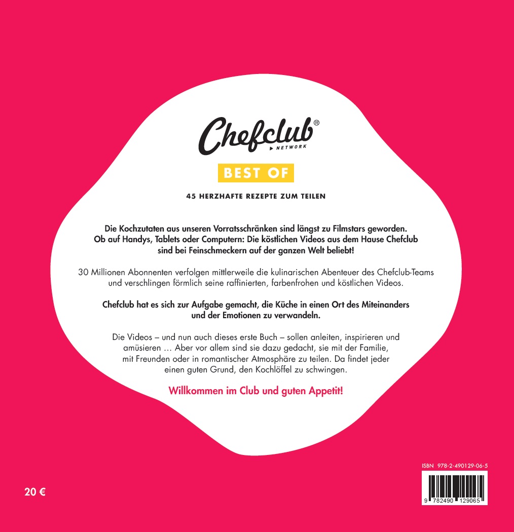 EINLEITUNGDie Kochzutaten aus unseren Vorratsschränken sind längst zu Filmstars geworden. Ob auf Handys, Tablets oder Computern: Die köstlichen Videos aus dem Hause Chefclub sind bei Feinschmeckern auf der ganzen Welt beliebt! Mittlerweile folgen über 52 Millionen Menschen weltweit unseren Rezept-Videos - und Sie gehören dazu. Unser kleines Team, das aus 35 Personen aus Deutschland, Frankreich und dem Rest der Welt besteht, ist darauf mehr als stolz.Die Videos - und nun auch dieses erste Buch - sollen anleiten, inspirieren und amüsieren, aber vor allem sind sie zum Teilen gedacht.Im ersten Teil, "Familie", dreht sich alles um Rezepte, die so einfach und so lecker sind, dass sich die ganze Familie im Nu bei Tisch einfindet!Der zweite Teil, "Freunde", steht ganz im Zeichen des Aperitifs. Einladende Formate sollen für Geselligkeit und ein gemütliches Beisammensein sorgen.Teil drei, "Liebe", umfasst raffiniertere Rezepte, solche, deren Zubereitung viel Liebe zum Detail und Aufmerksamkeit erfordert ... die gleiche Aufmerksamkeit, die man auch seiner besseren Hälfte entgegenbringt.Und was Teil vier, "Bonus", betrifft ... Hier wartet eine Überraschung auf Sie. Eine süße Überraschung!