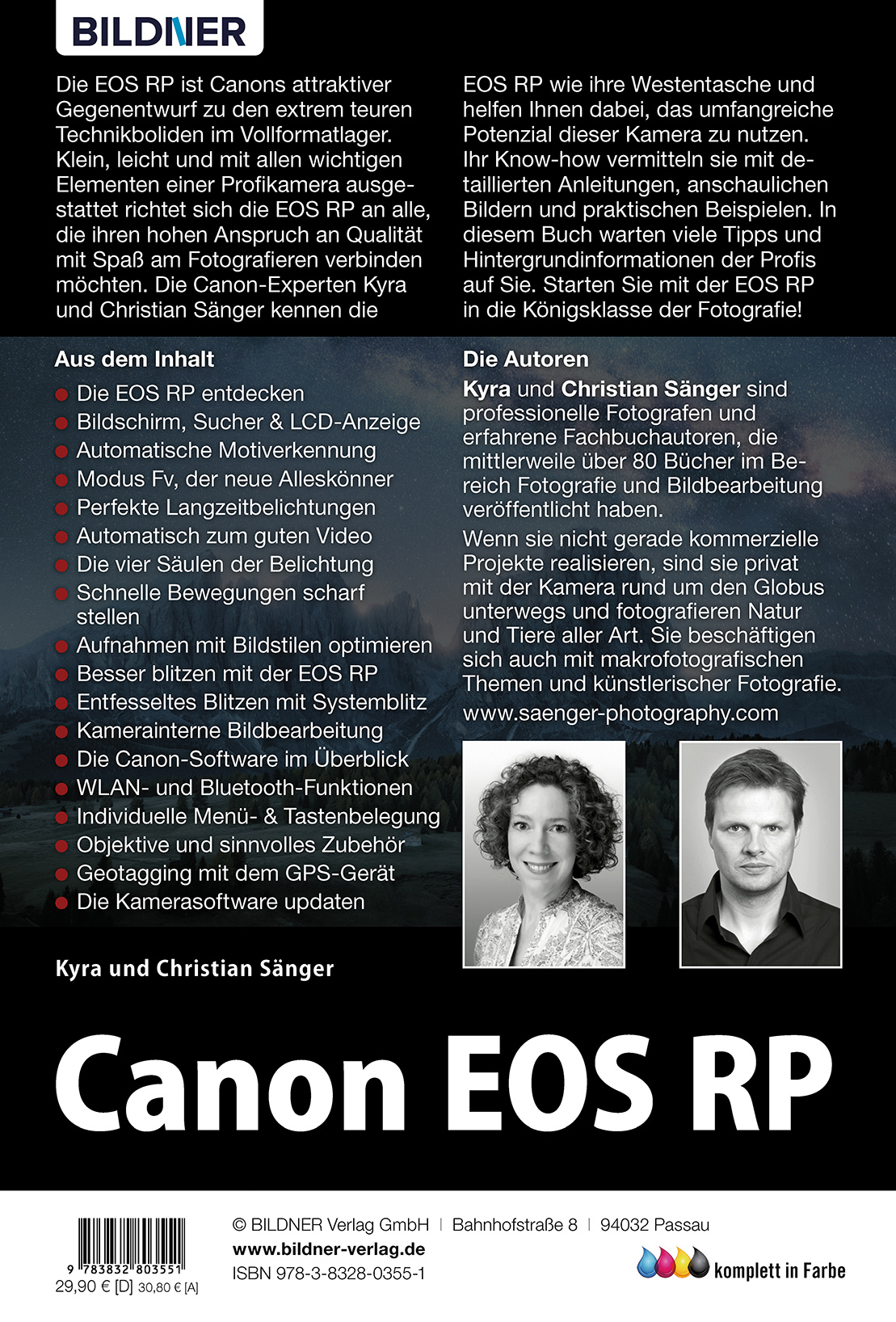 Ihr Know-how vermitteln sie mit detaillierten Anleitungen, anschaulichen Bildern und praktischen Beispielen. In diesem Buch warten viele Tipps und Hintergrundinformationen der Profis auf Sie. Starten Sie mit der EOS RP in die Königsklasse der Fotografie!