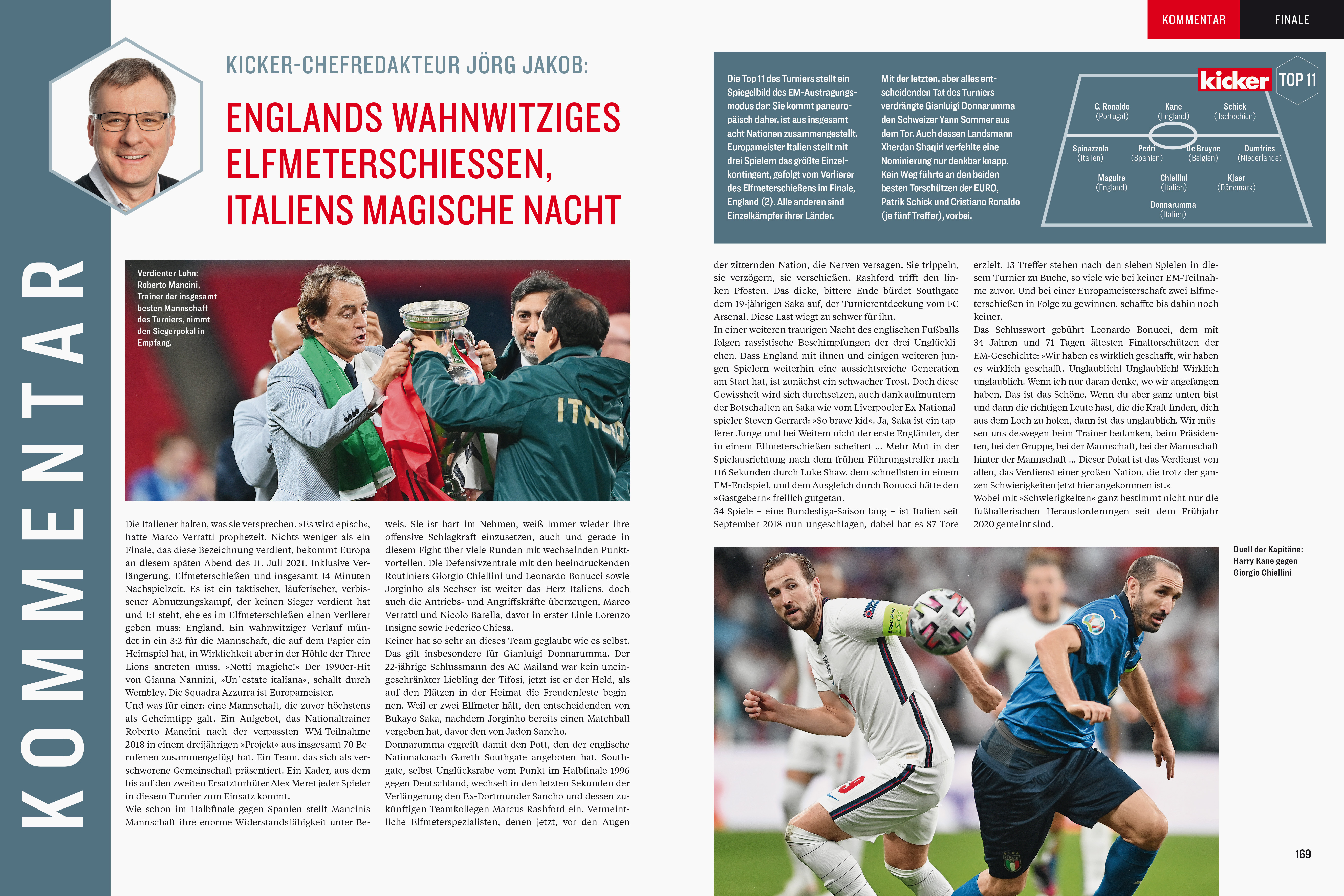 Die Autoren vom kicker, dem auflagenstärksten Fußball-Fachblatt im deutschsprachigen Raum, und die besten Fotografen von SVEN SIMON, der renommierten Sport-Bildagentur, berichten aktuell von der Fußball-Europameisterschaft 2021.
