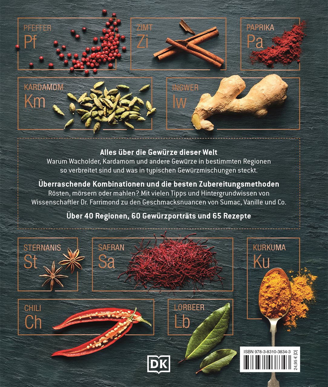 Die richtige Gewürzkombination kann den Geschmack eines Gerichts perfektionieren, ein anderes Gewürz das Rezept grundlegend verändern - und die falsche Wahl es ungenießbar machen. Warum manche Gewürze gut zueinanderpassen, andere dagegen nicht kombiniert werden sollten, und wie man die perfekten Gewürzmischungen erstellt, erklärt Dr. Stuart Farrimond - Kochbuchautor und Doktor der Medizin - in seinem neuesten Buch. Sein eigens entwickeltes Periodensystem der Gewürze verschafft einen informativen Überblick über die Welt der Gewürze und eröffnet Ihnen durch dieses Verständnis beim Kochen ganz neue Möglichkeiten!