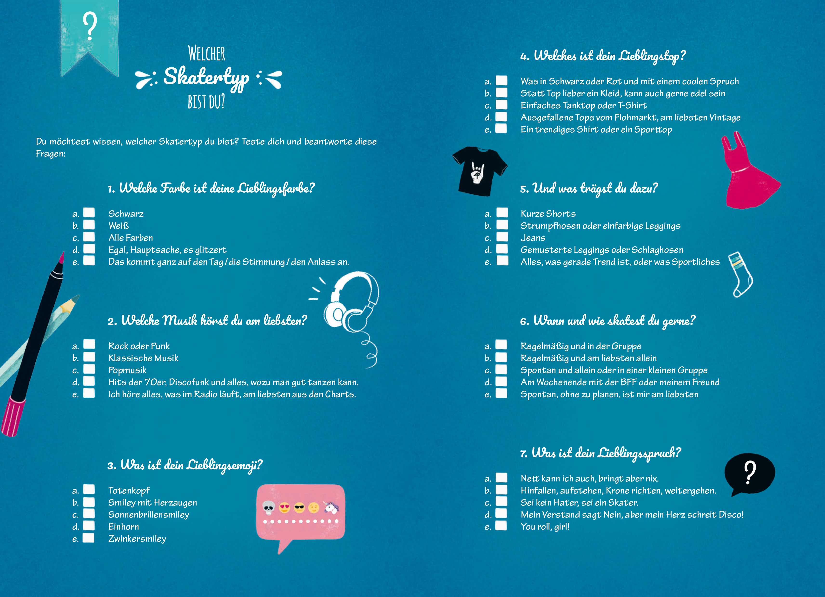 Liebevoll illustriert und gestaltet von Autorin und Illustratorin Anke Dregnat, die selbst begeisterte Rollschuhfahrerin ist und sich bestens mit allen Tricks rund um Rampskating, Figureskating und Rollerskating auskennt.